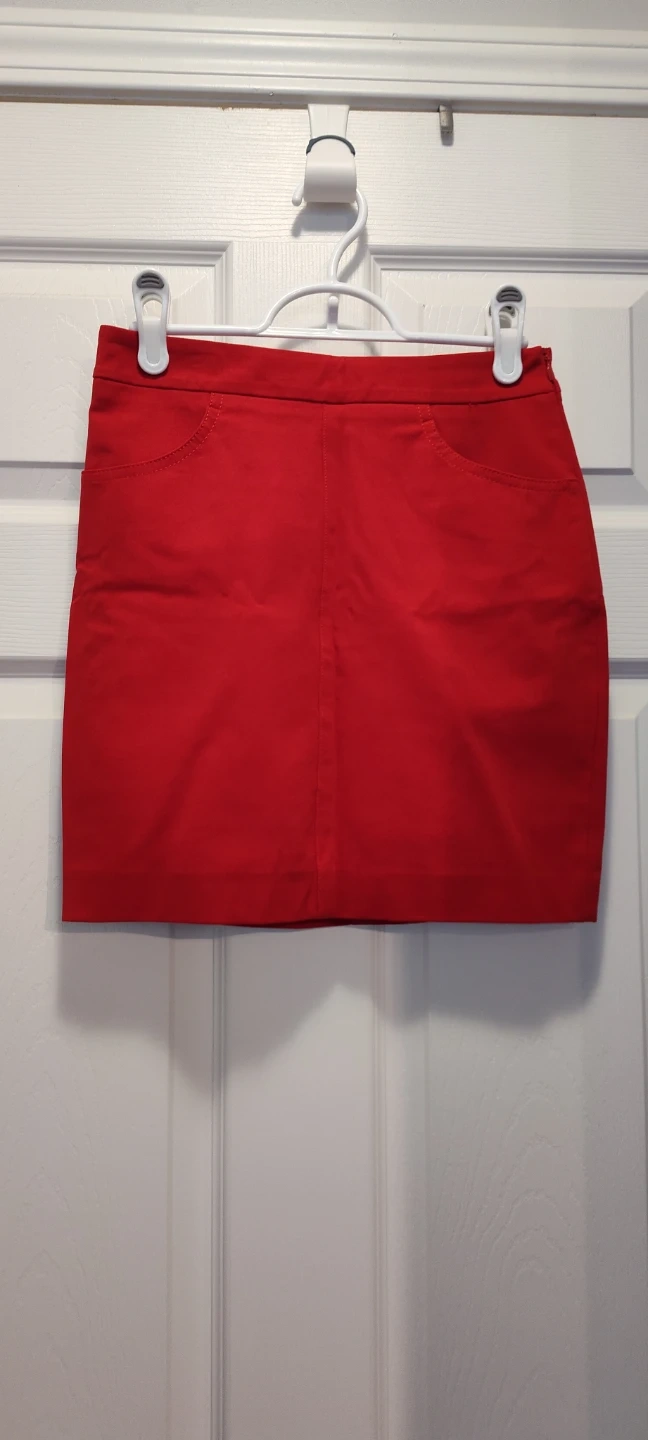 A cute red mini skirt! Perfect for adding a pop of colour to your wardrobe. It's in great condition and ready for a new owner.