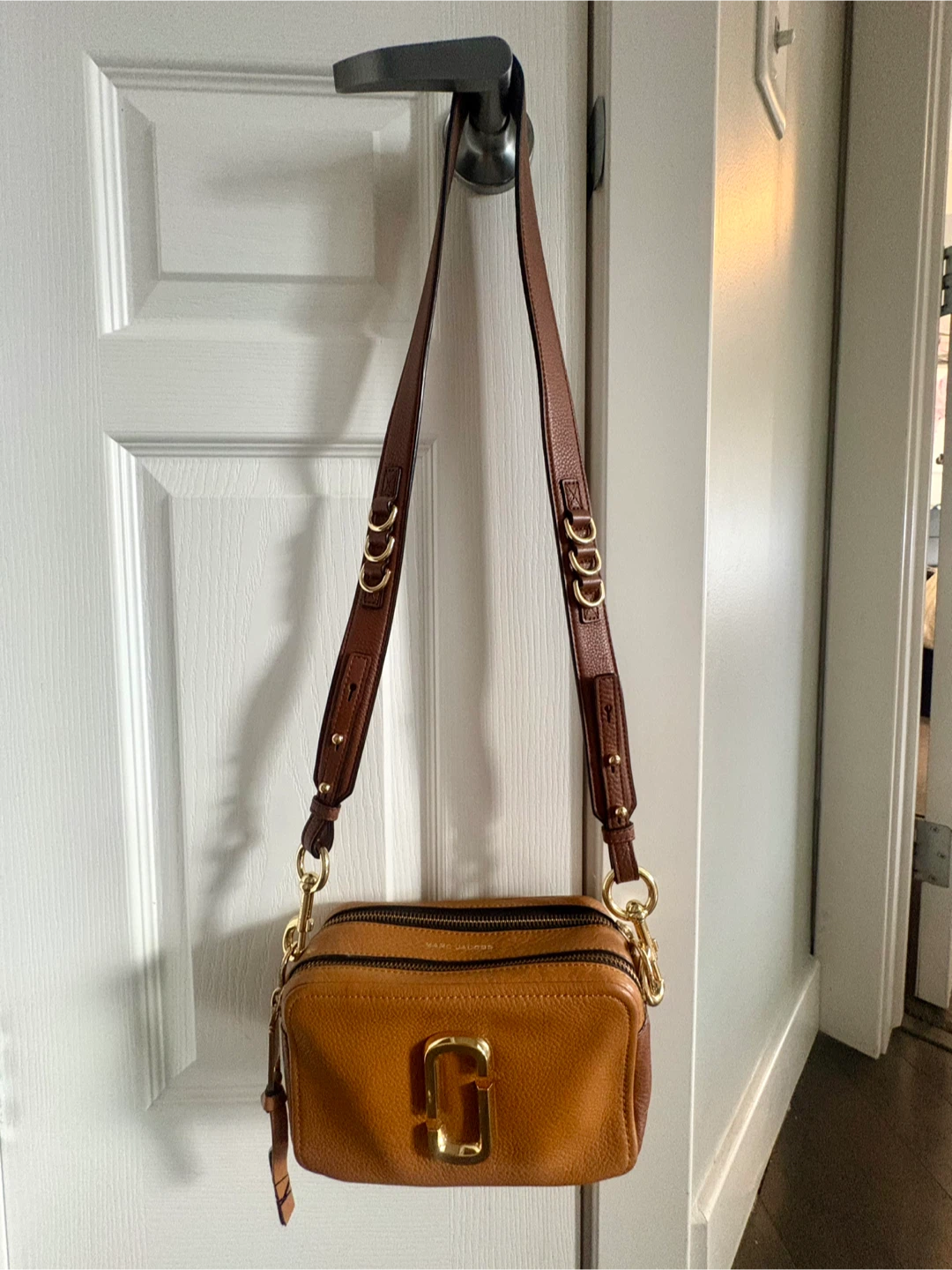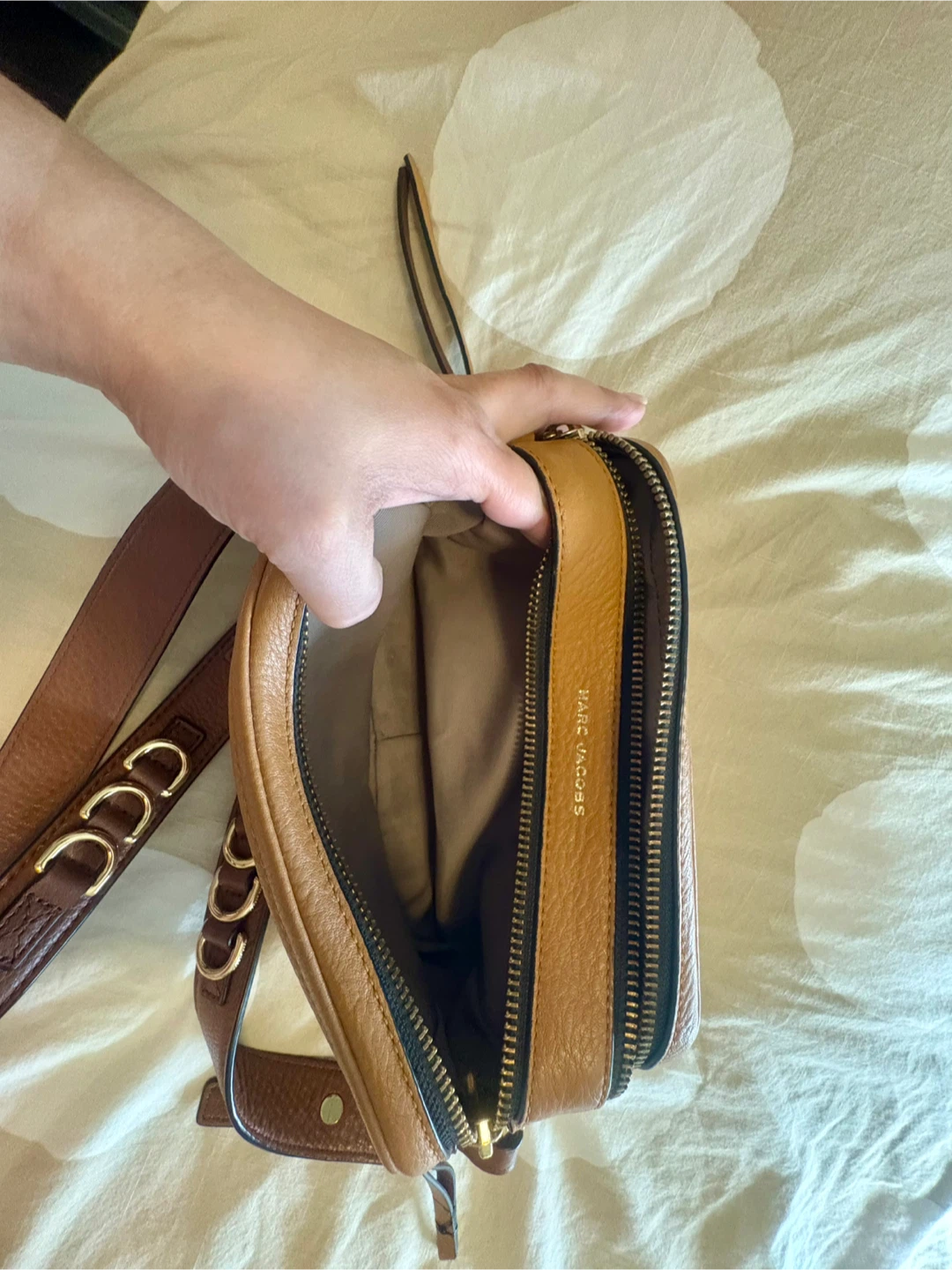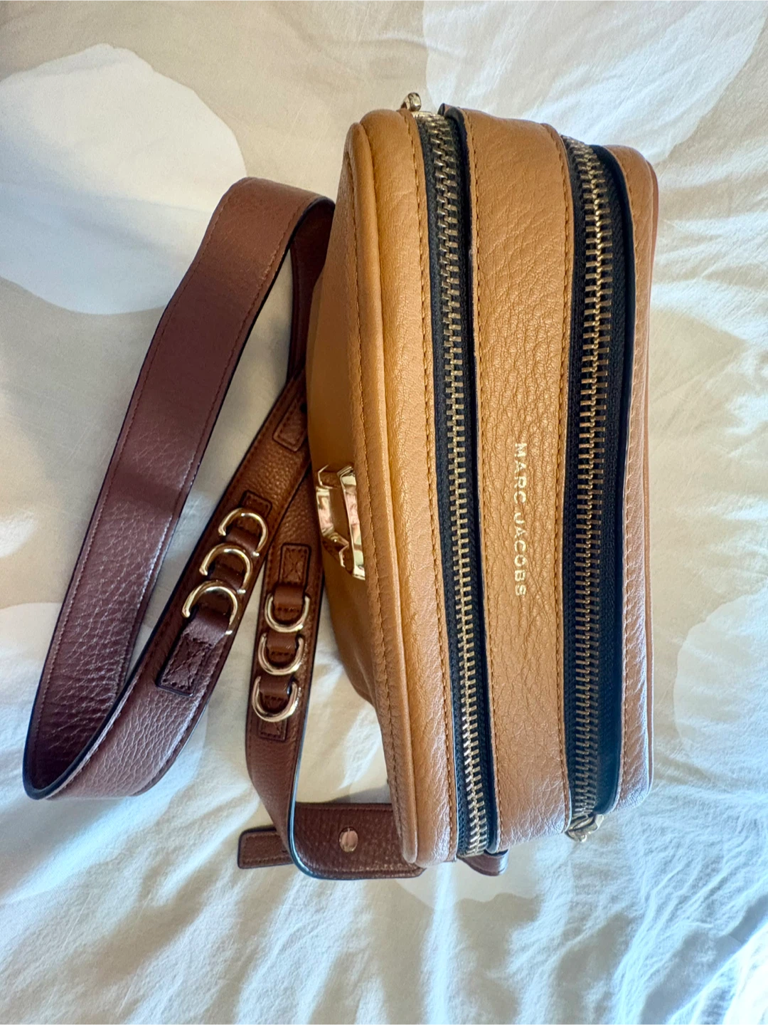 Selling a gently used Marc Jacobs camera bag in brown leather. It's in great condition and has a stylish design. Perfect for everyday use!