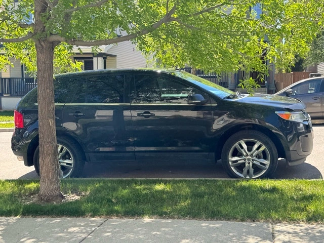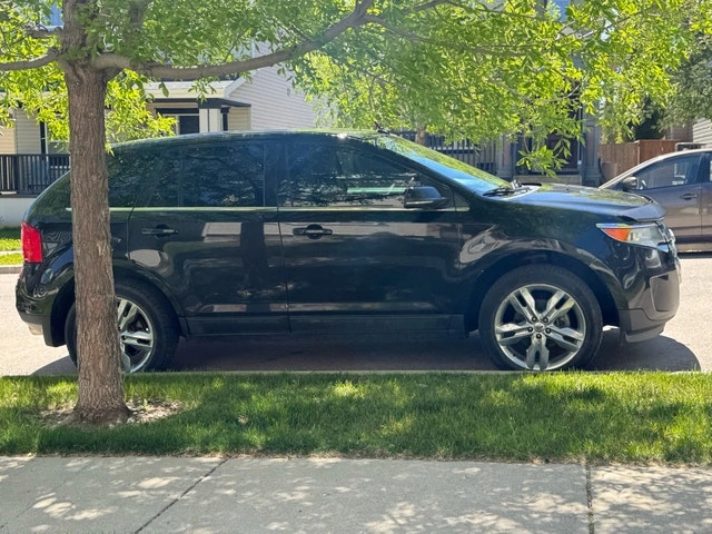 Ford Edge Limited, black exterior, brown leather interior. Heated seats, power windows and steering. Automatic rear hatch. Panoramic sunroof.