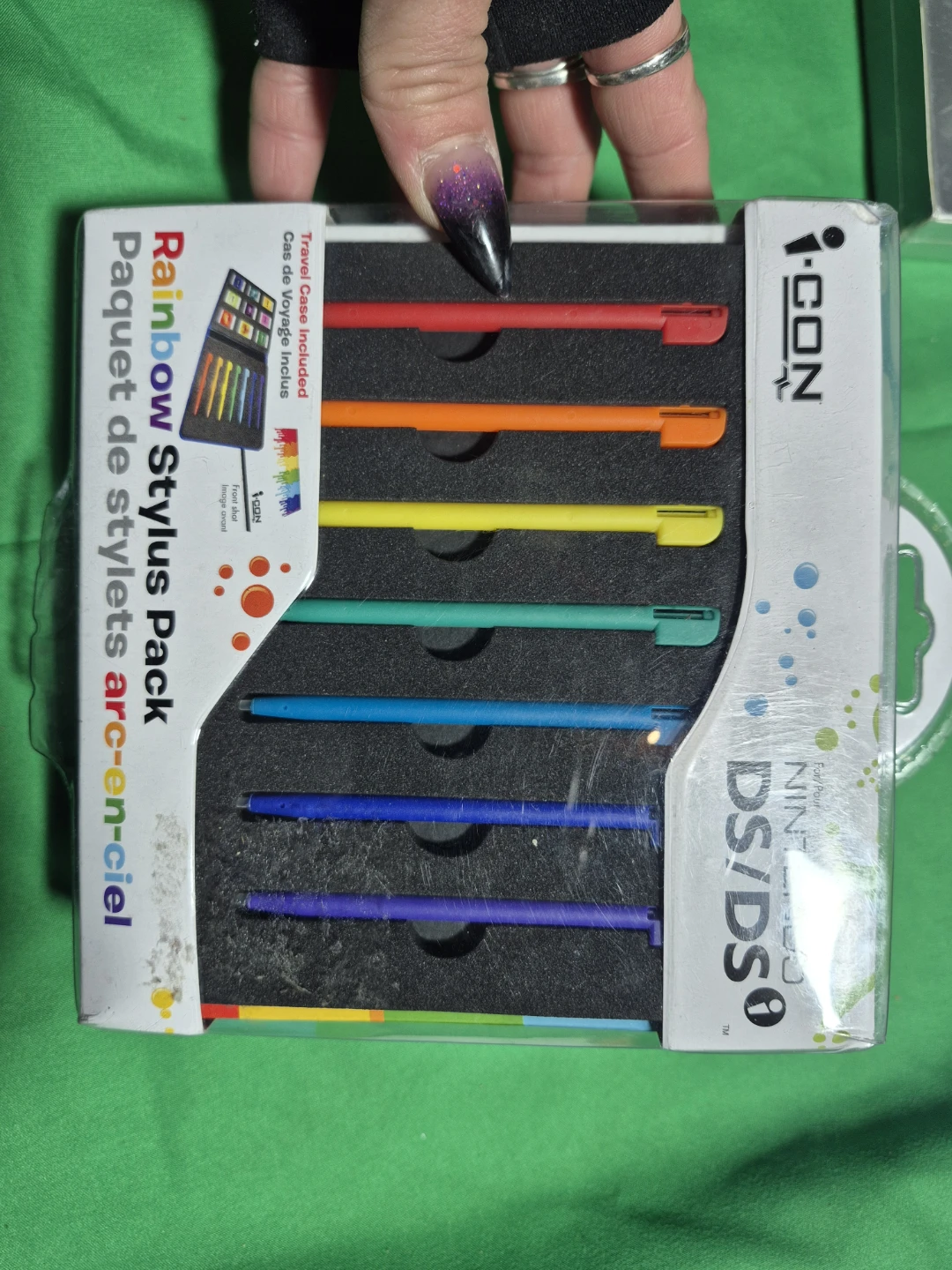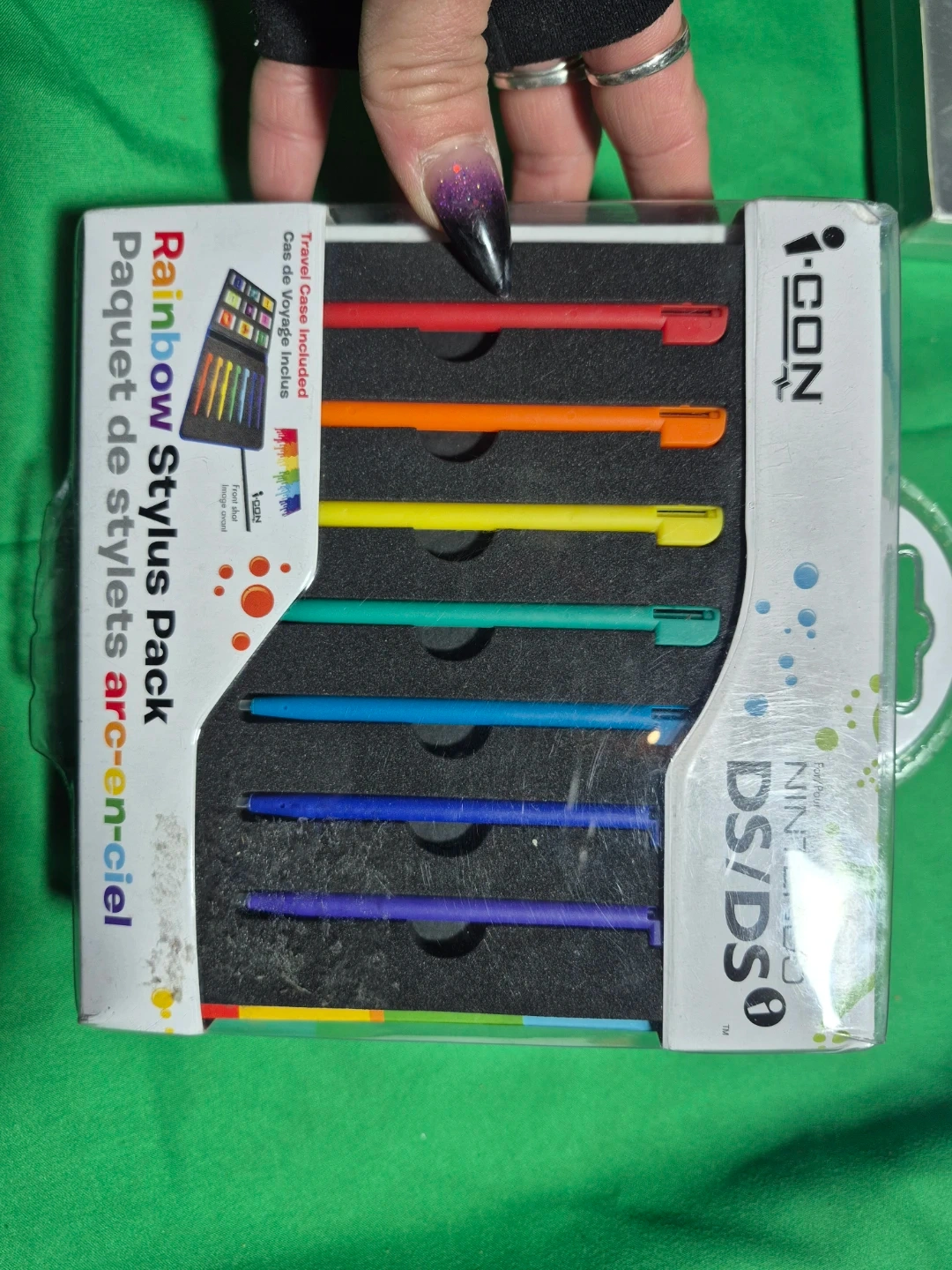 I'm selling a brand new I-CON Rainbow Stylus Pack for Nintendo DS/DSi! It includes 7 styluses in rainbow colours and a travel case. Perfect for keeping your styluses organized and easy to find!