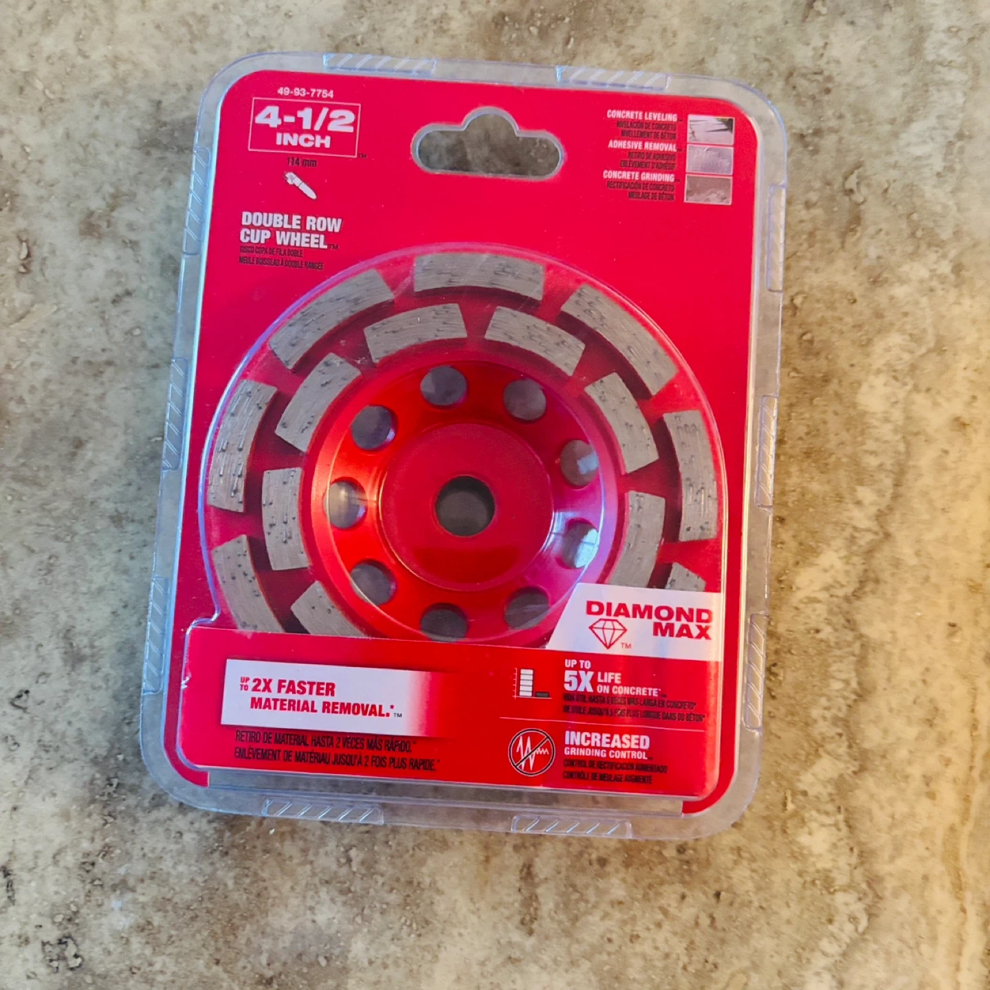 Selling a brand new Milwaukee 4-1/2 inch DIAMOND MAX Double Row Diamond Cup Wheel.