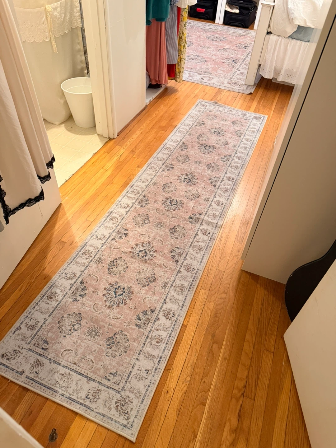 Set of 3 Shabby Chic pink rugs, 1 area, runner and one small mat