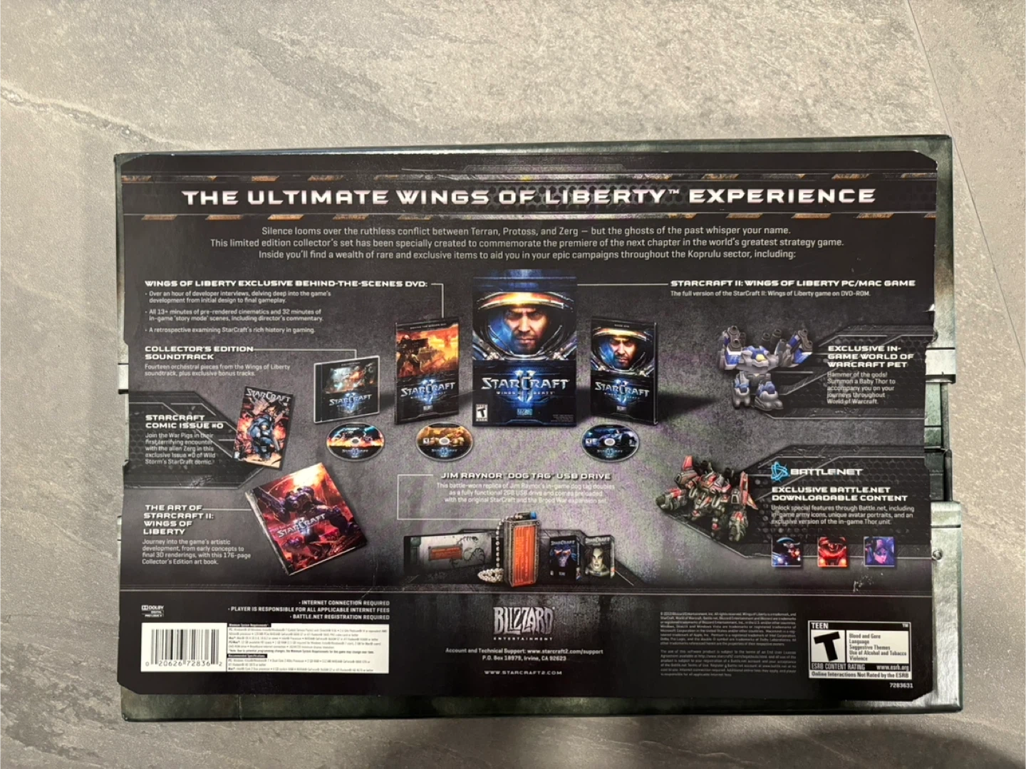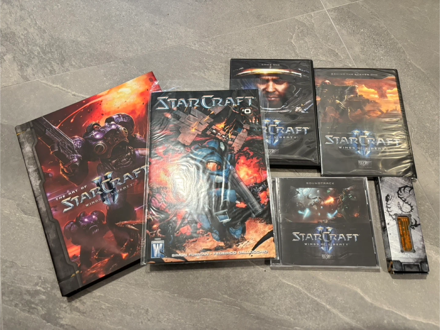 This set includes the game, behind-the-scenes DVD, soundtrack, comic book, art book, and a Jim Raynor dog tag USB drive.