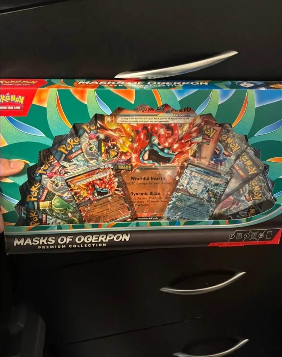 Selling a Pokemon Trading Card Game Masks of Ogerpon Premium Collection! This set includes booster packs and promo cards featuring Ogerpon. Perfect for collectors and players alike