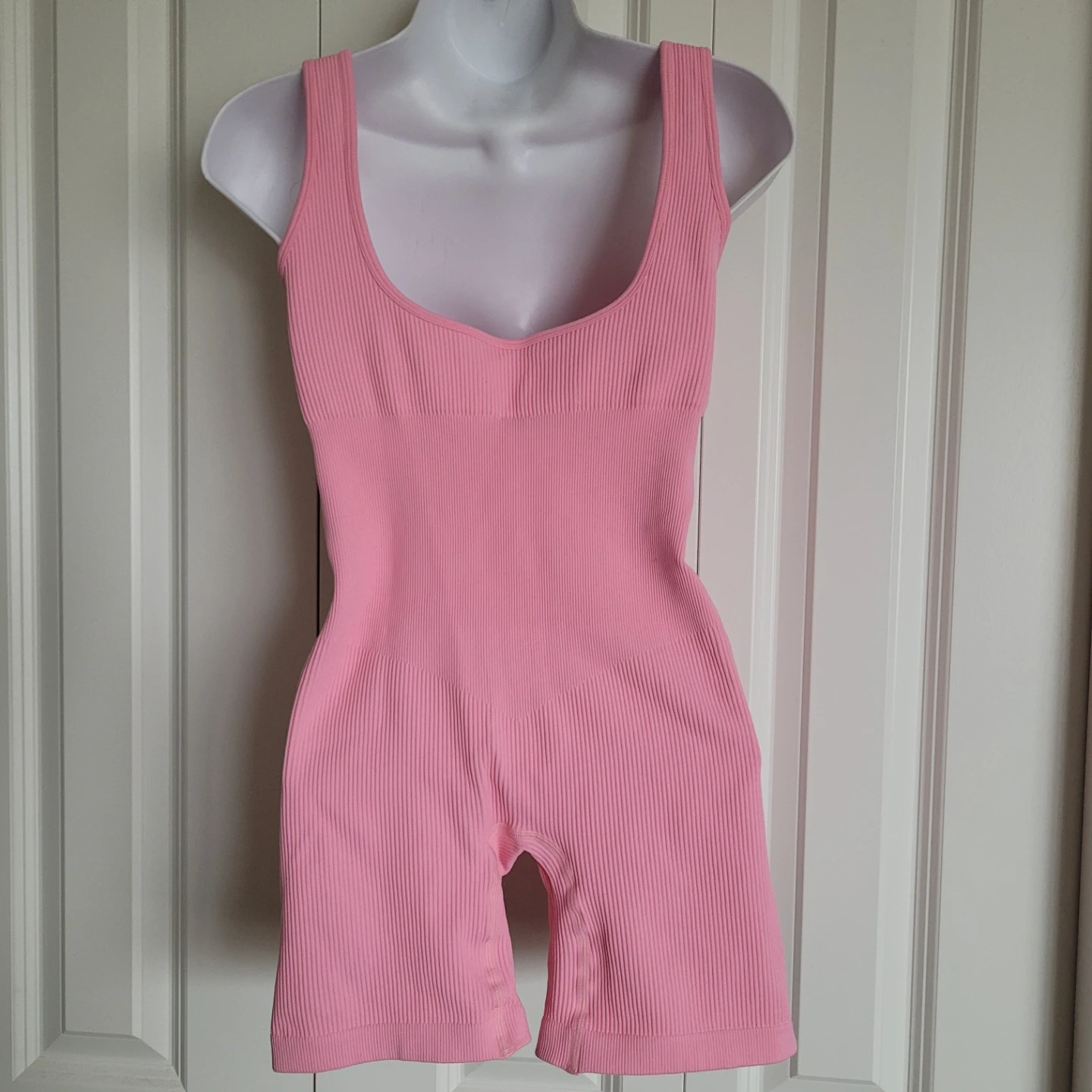 Cute pink ribbed bodysuit with padded bra!