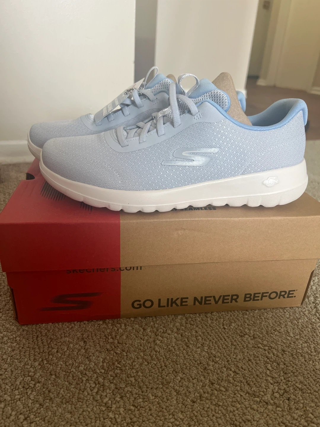 These are brand new Skechers GO WALK JOY - SEA WIND in light blue, size 9!
