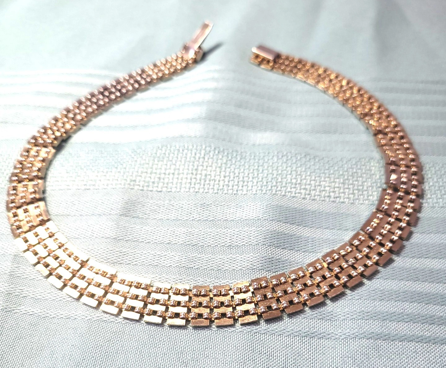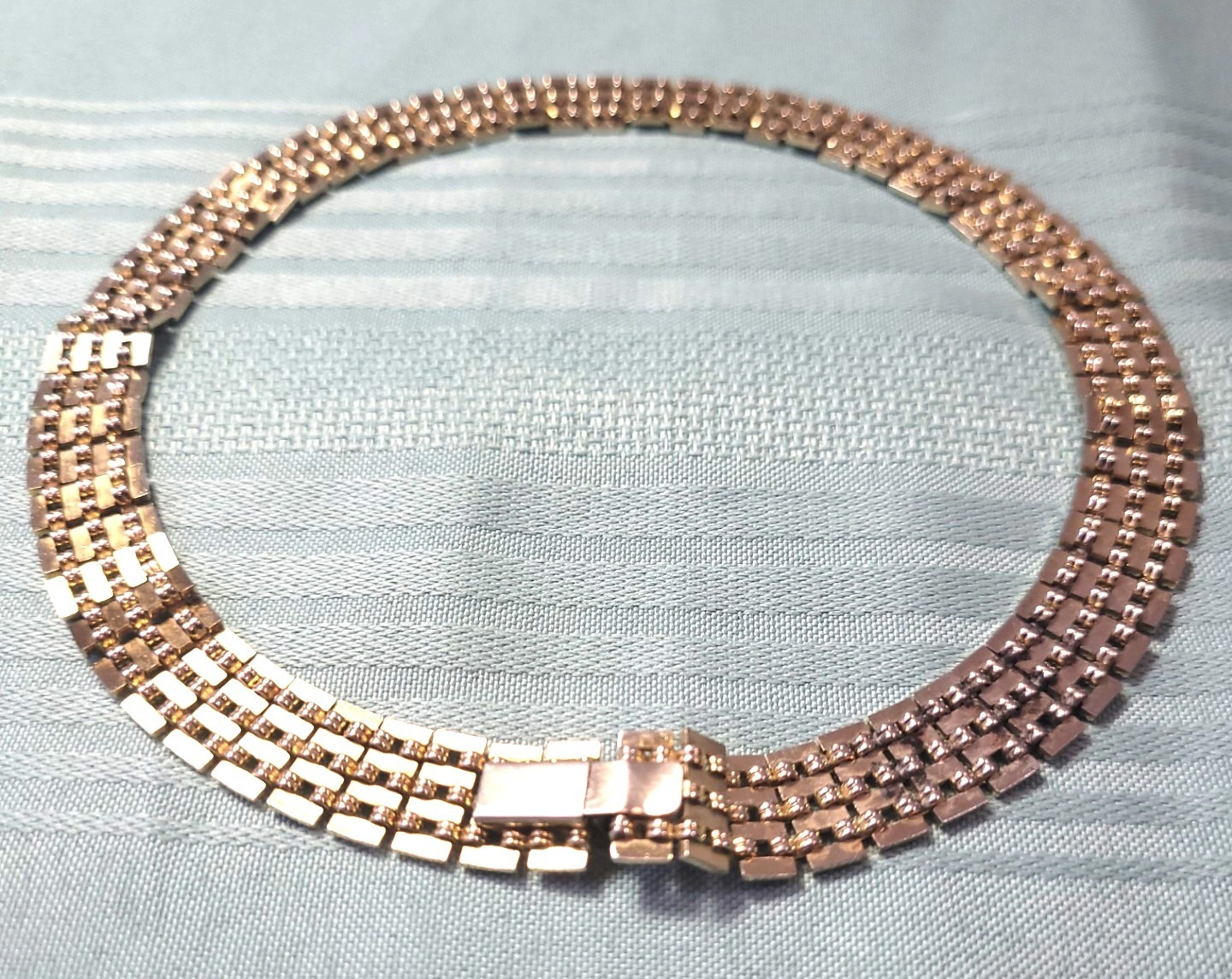 Condition: Good vintage condition light wear. The plating is vibrant with no visible pitting or "green" oxidation. The links are fluid and move freely without kinking. Please reference photos as part of the description of the item.