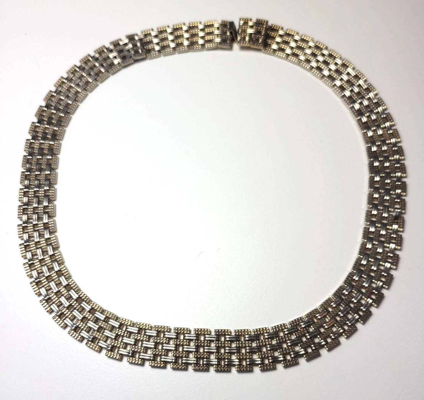 Brand: Unsigned Vintage (High Quality) Era: Circa 1984-1988 Style: Statement Brick Link / Panther Link Collar