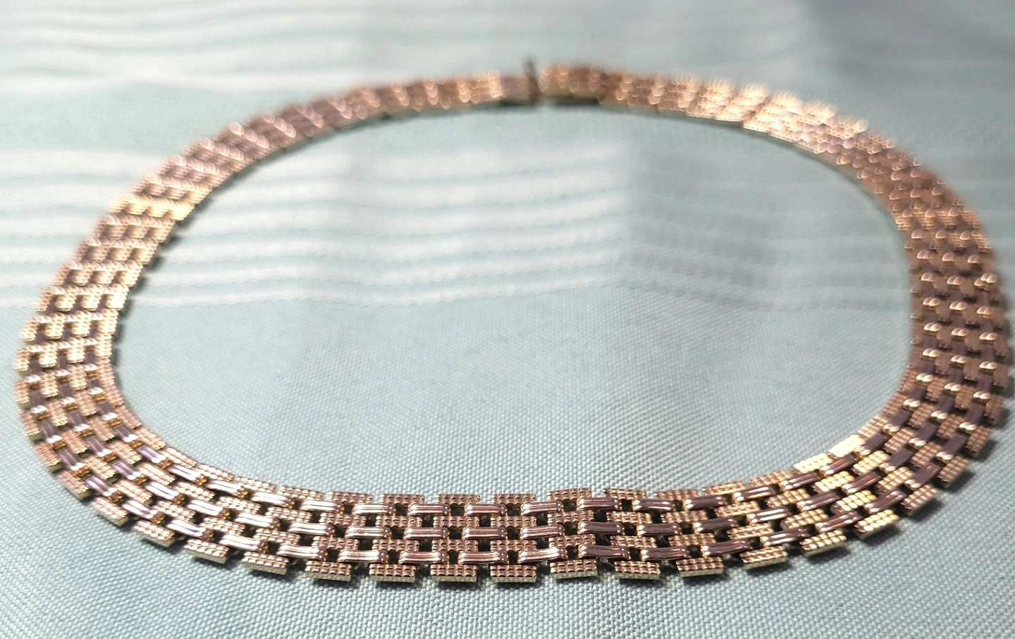 Vtg 1980s Gold Tone Brick Link Collar Necklace 15.5" Wide