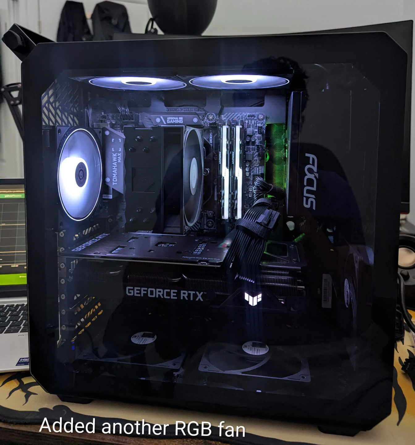 I'm including a Bluetooth USB dongle. The motherboard only has 4pin RGB headers so I'm using a simple 3pin RGB controller that has to be toggled with a button since I wanted minimal white RGB anyways. You can also buy an adapter for 12v to 5v rgb online if you want to use software control.