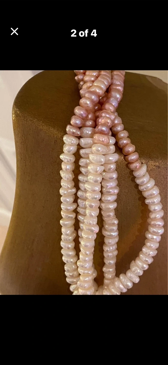 💖Estate Vintage 5-Strand Layered White & Pink Pearl Necklace