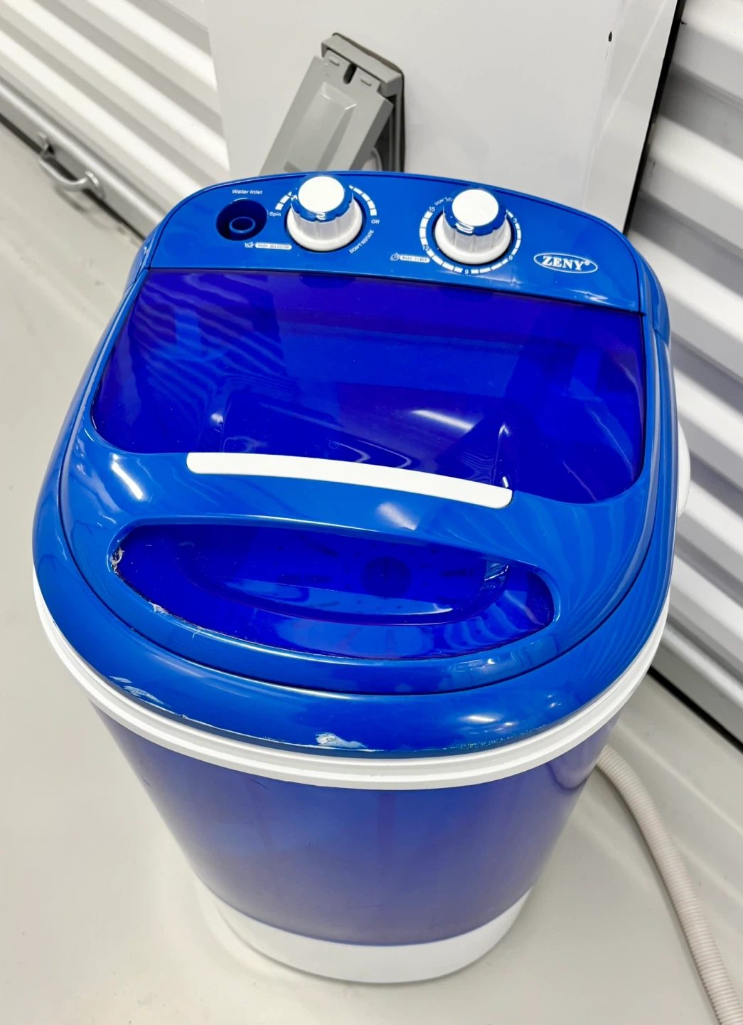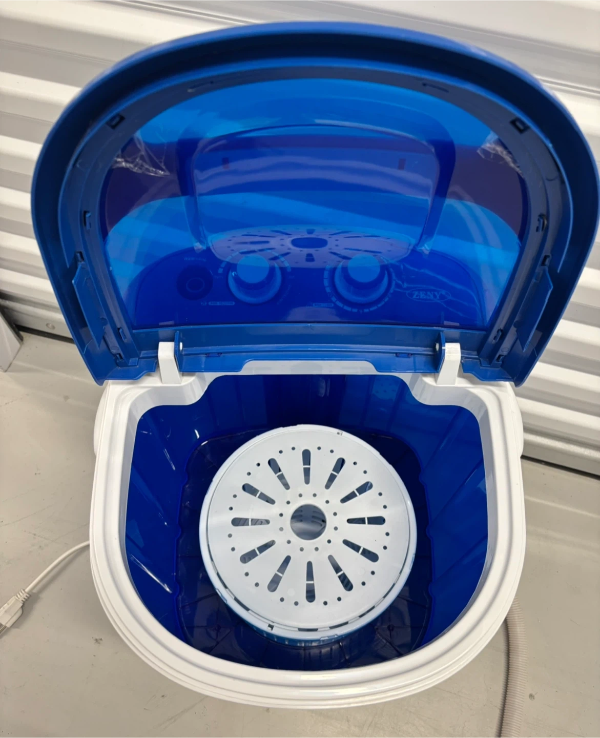 Selling a Zeny portable mini washing machine. It's in good condition and ready to use! There are some minor scratches on the exterior, but it does not affect its functionality.
