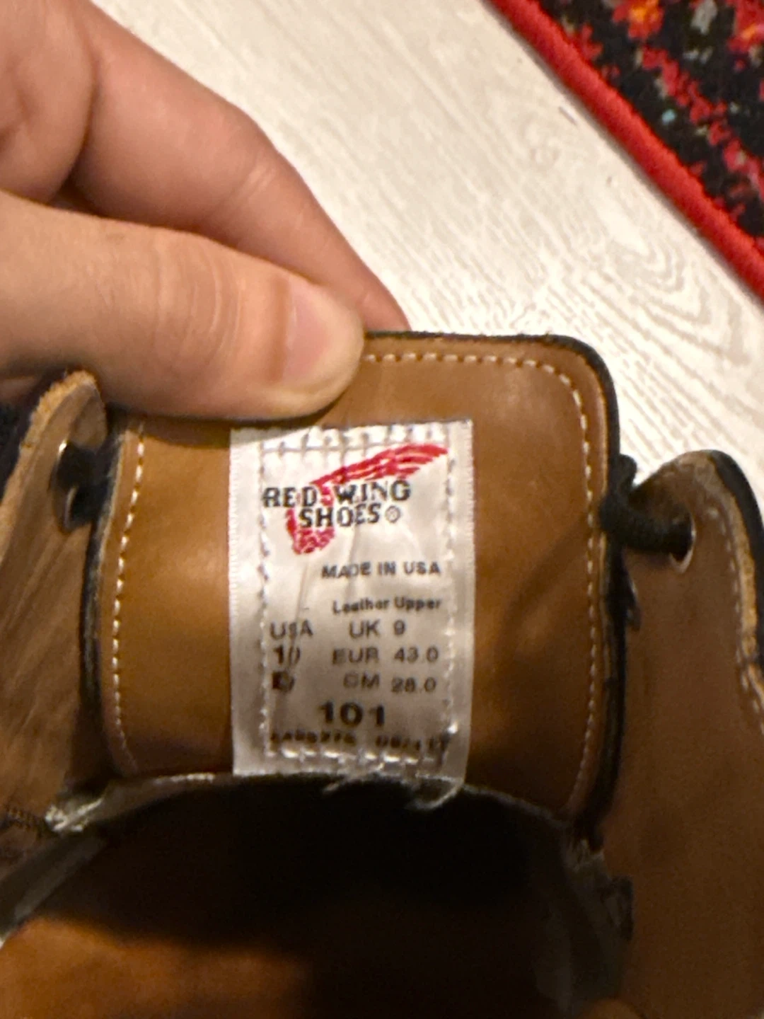Selling a pair of Red Wing Shoes 101 in black leather. They are a size 10 US. They are in good condition and ready for a new owner!