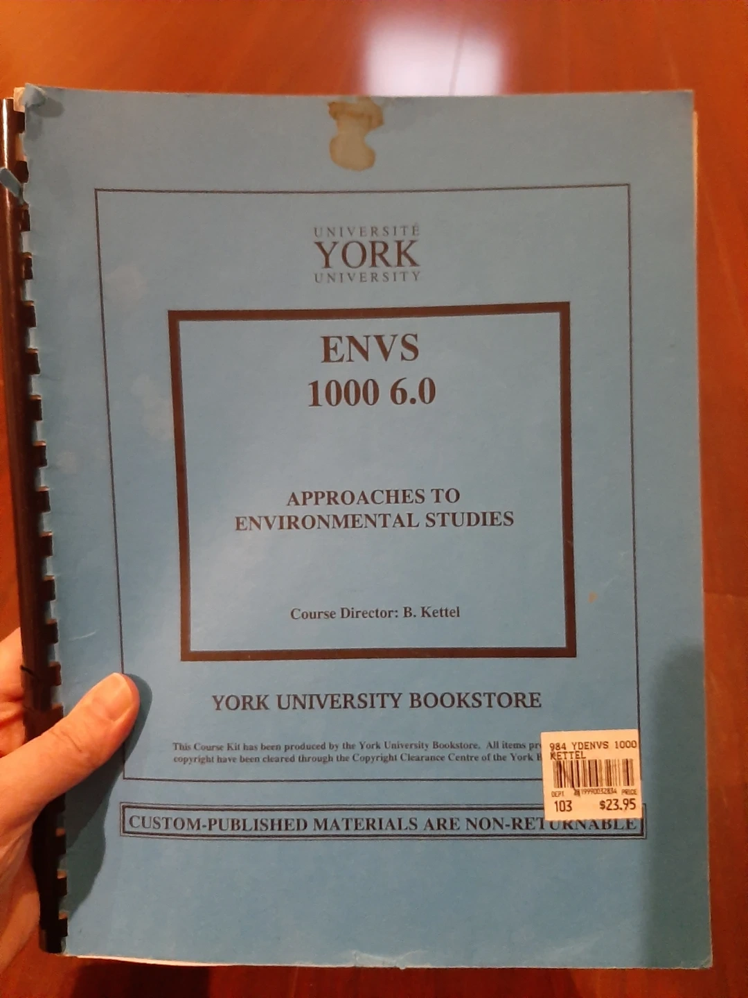Selling a York University course kit for ENVS 1000 6.0, titled 'Approaches to Environmental Studies'. It was directed by B. Kettel and published by the York University Bookstore. Originally bought for $23.95!