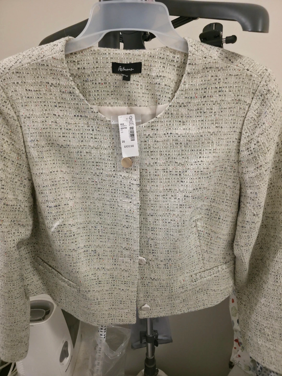 Selling a Reitmans tweed blazer in size 20! It's brand new never worn just opened to see that I got wrong size. Its perfect for adding a touch of sophistication to any outfit. The neutral colour makes it super versatile too