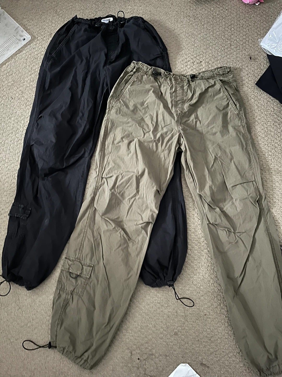 Selling a pair of Garage pants in size XS for $35 each ($60 for both). One is black and the other is an olive green colour. Both are made of 100% cotton. They’re not damaged, worn out, or stained. Comes from a smoke free and pet free home