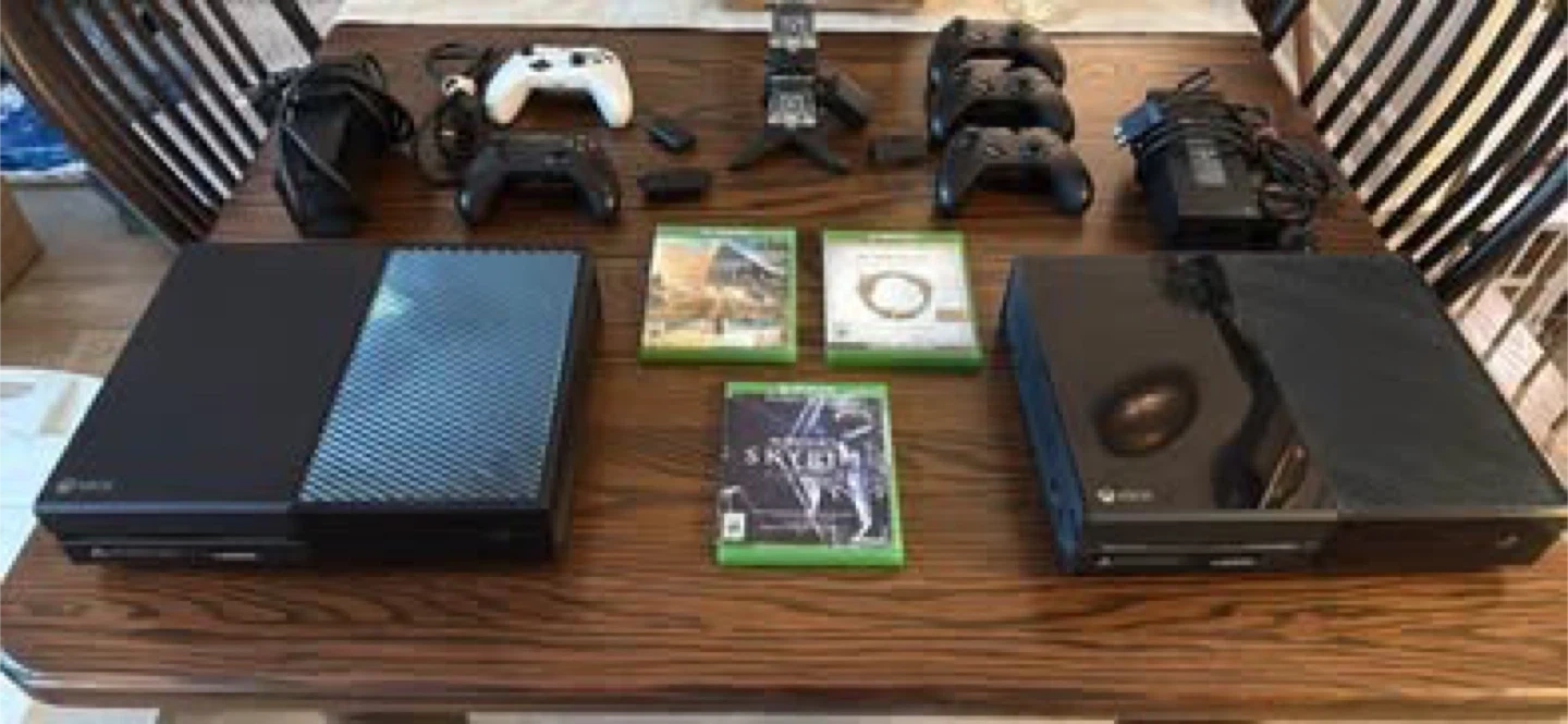 Selling an Xbox One console including two controllers with several games as shown in the pictures. Great for some gaming fun!