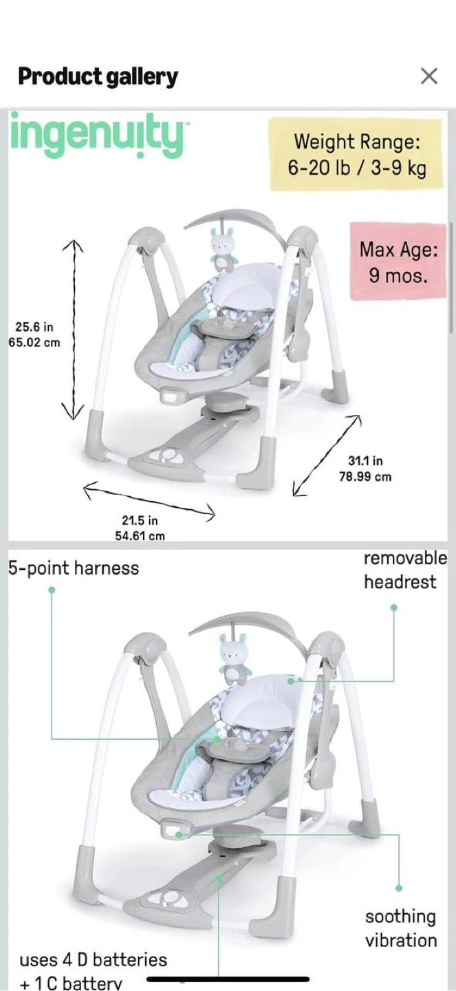 π Ingenuity ConvertMe 2-in-1 Compact Portable Baby Swing & Infant Seat β Grey π