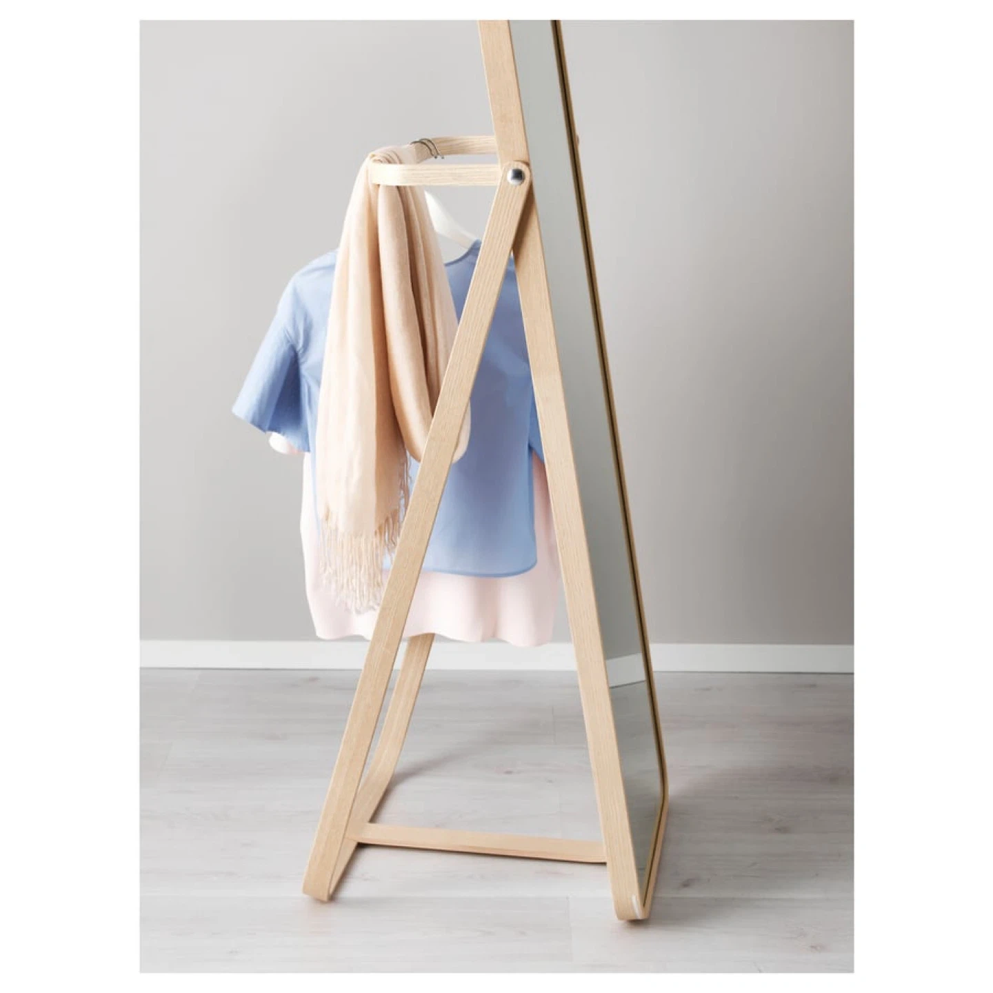 Looking to sell my IKEA KNAPPER standing mirror! It's a great addition to any bedroom or dressing area. The built-in clothes rail is super handy for hanging clothes or accessories.