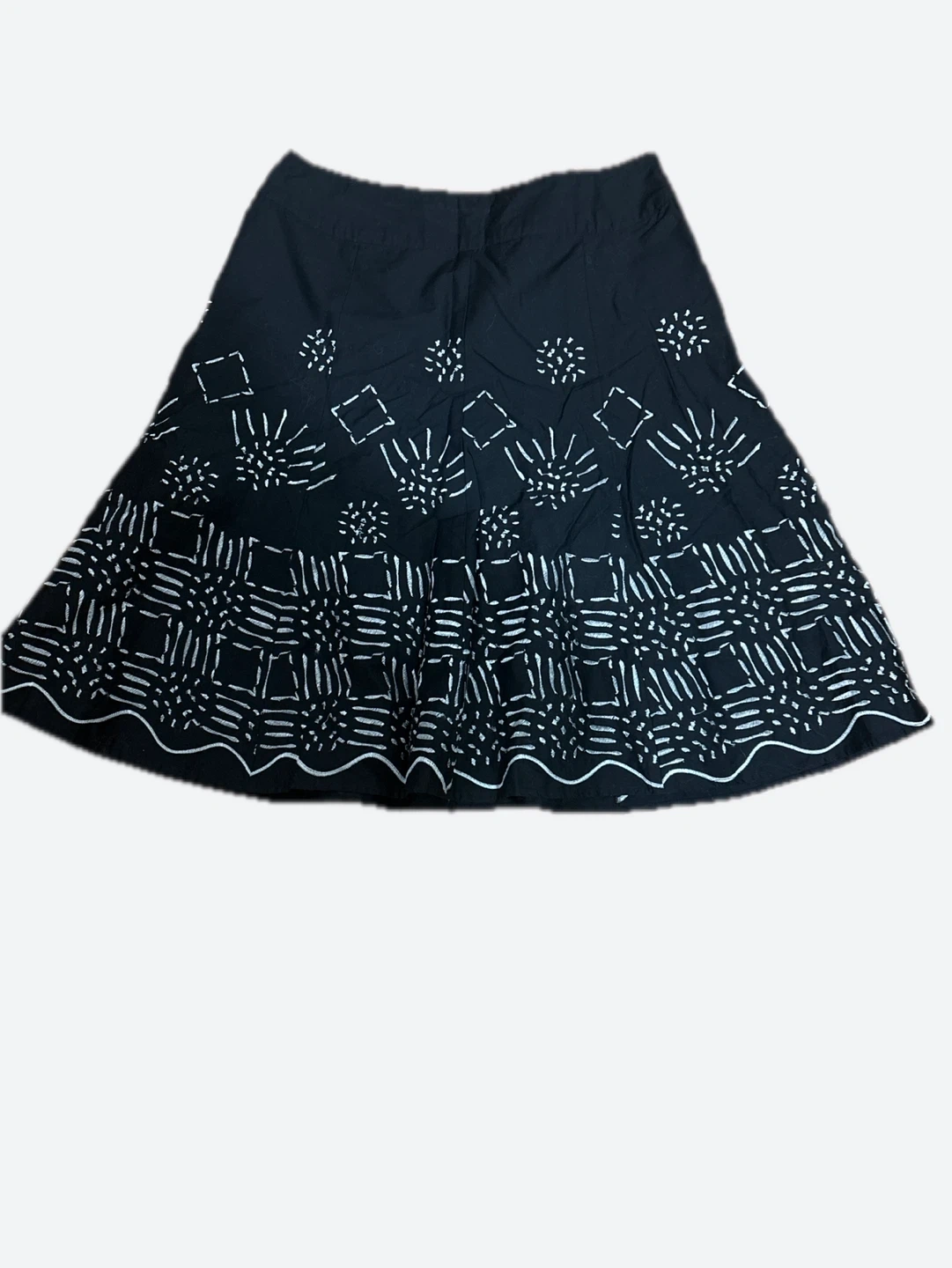 Selling a black skirt with a unique white pattern! It's in great condition and ready for a new wardrobe. The skirt has a comfortable fit and a stylish design that would be great for any occasion