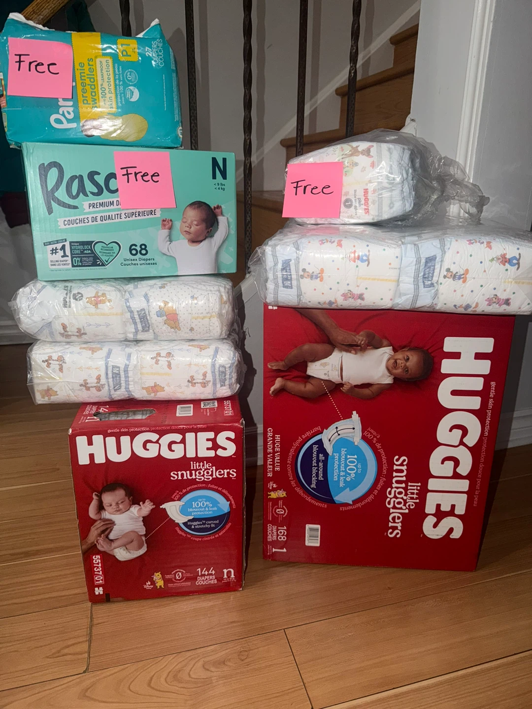 Selling a mix of baby diapers! There are Huggies Little Snugglers in size N (144 count and 168 count), Rascal + Friends Premium Diapers in size N (68 count), and Pampers Preemie Swaddlers (27 count). Perfect for stocking up!