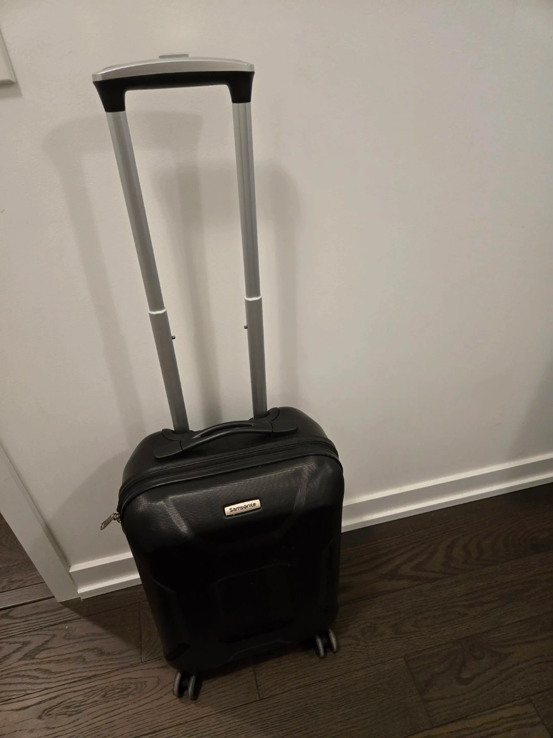 Selling a Samsonite carry-on suitcase in black. It's in great shape and ready for your next trip! Perfect for fitting in the overhead compartment.