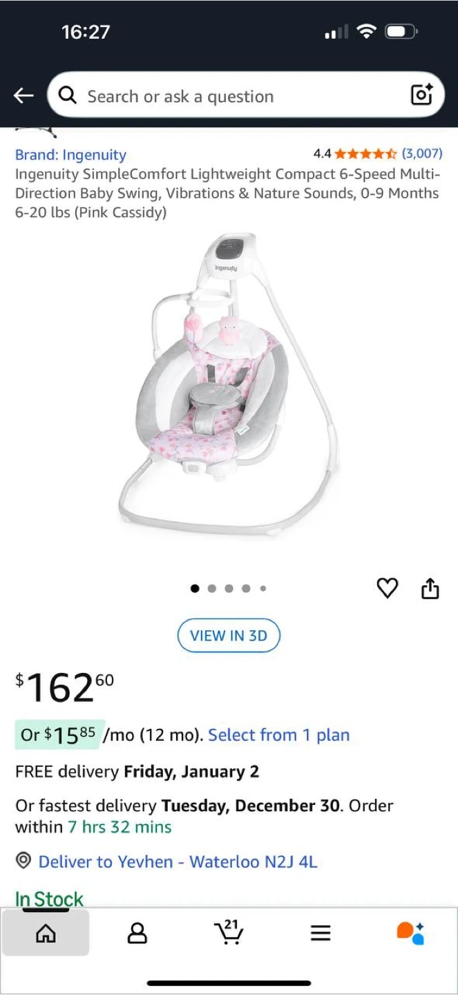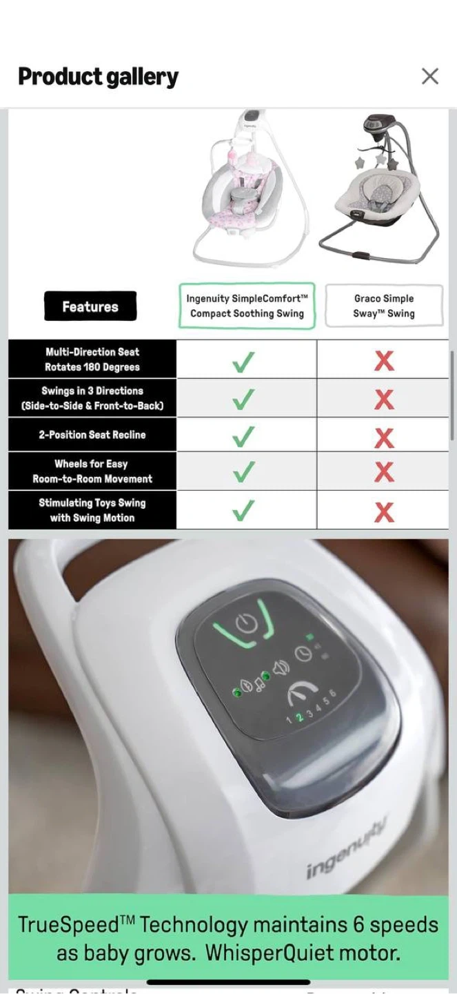 π Ingenuity Simple Comfort Cradling Swing β Everston π