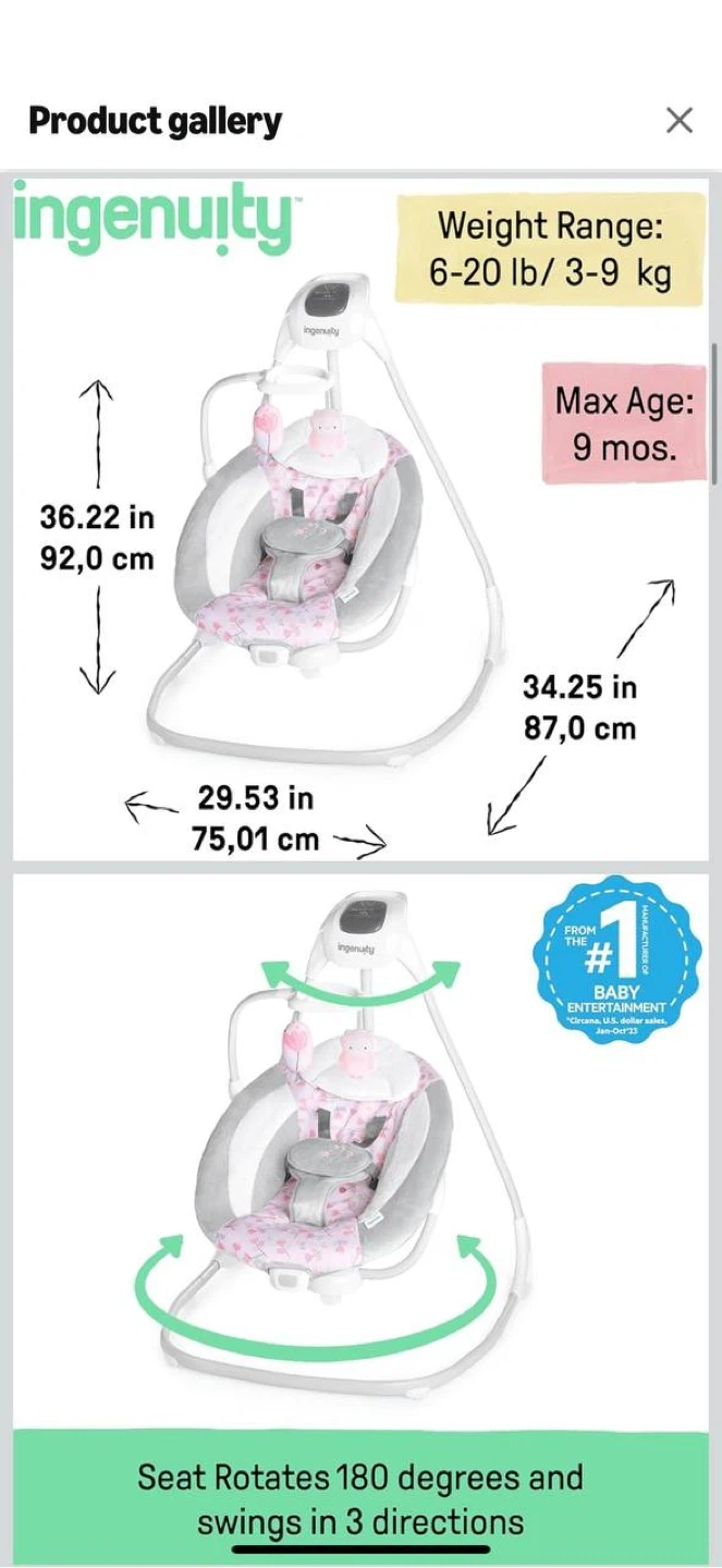 πΌ Multi-direction baby swing (seat rotates 180Β°)