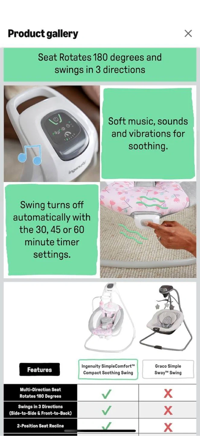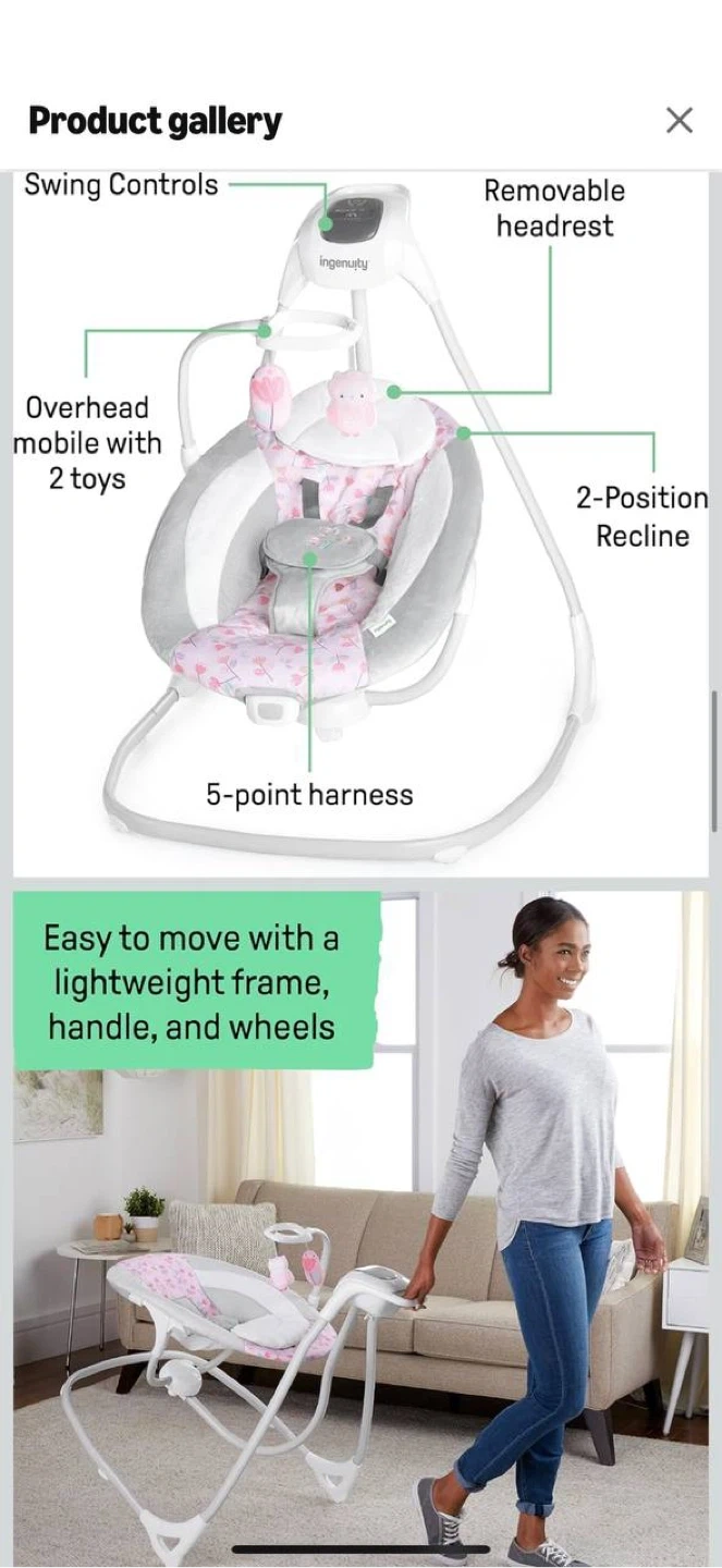 Ingenuity Simple Comfort Cradling Swing β Everston π