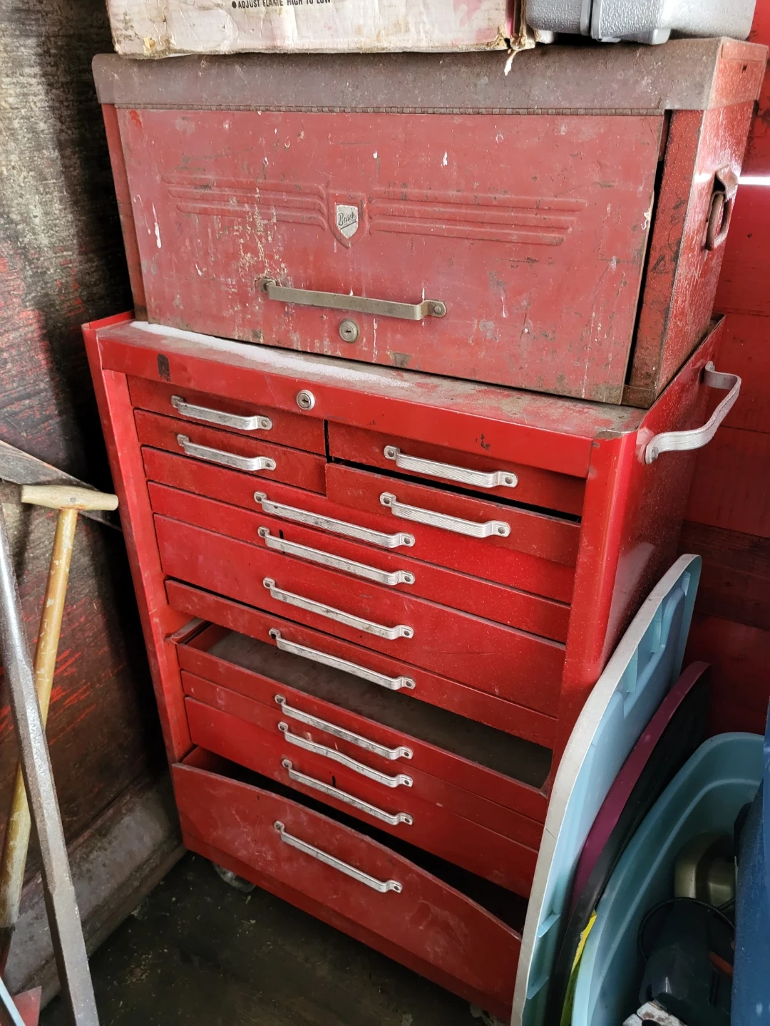 Selling a vintage Beach tool chest. The chest is about 27 inches wide and 17 inches deep. Great for storing your tools and keeping them organized! Listing for a friend.