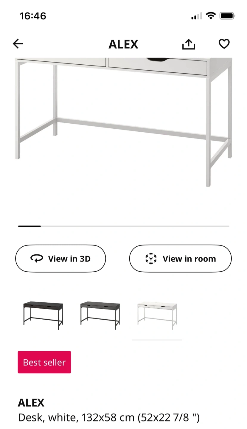 Selling a white IKEA ALEX desk! It's in great condition and ready for a new workspace. The desk measures 132x58 cm (52 22 7/8 "). It's a best seller and offers a clean, modern look for any room