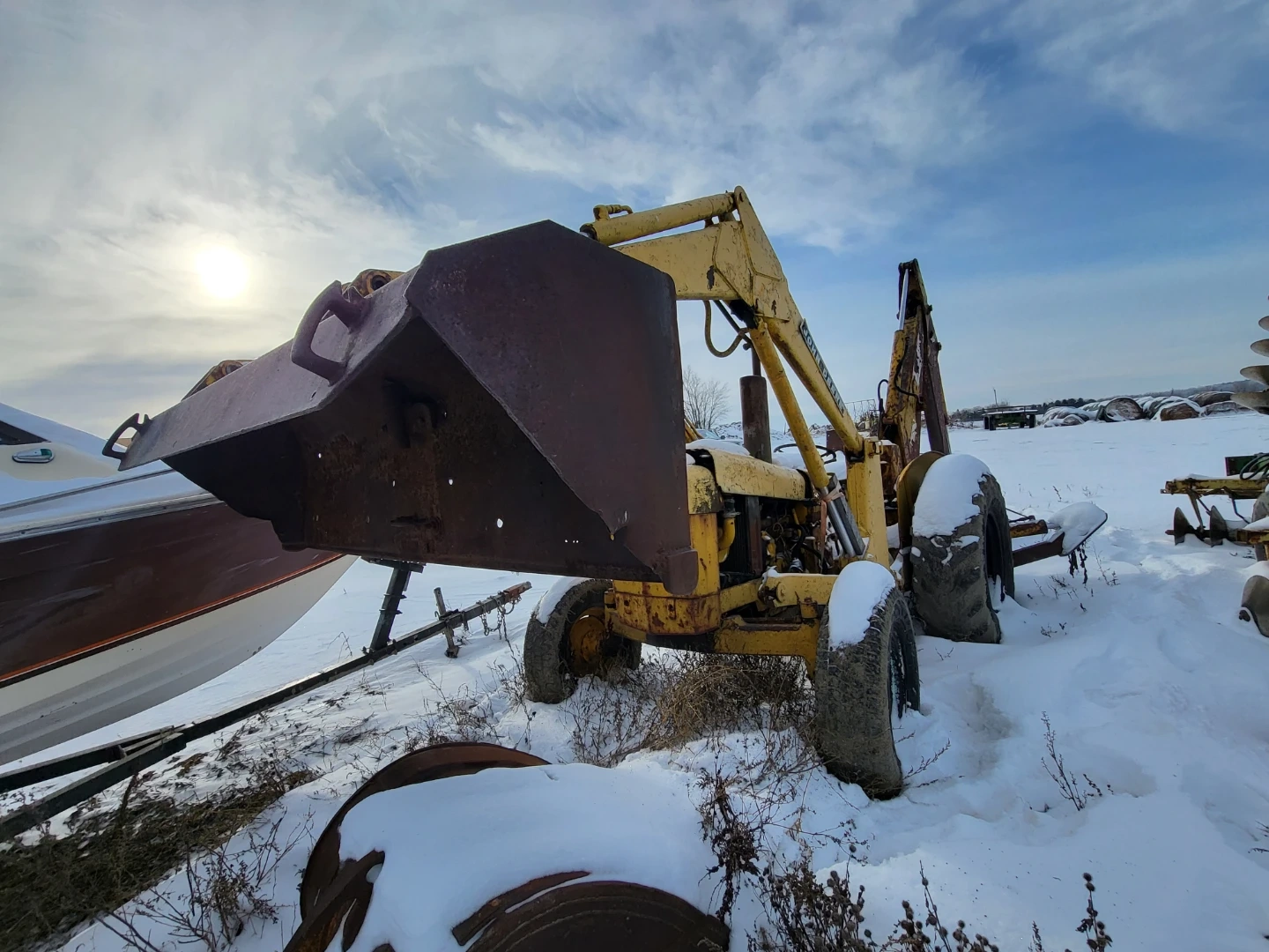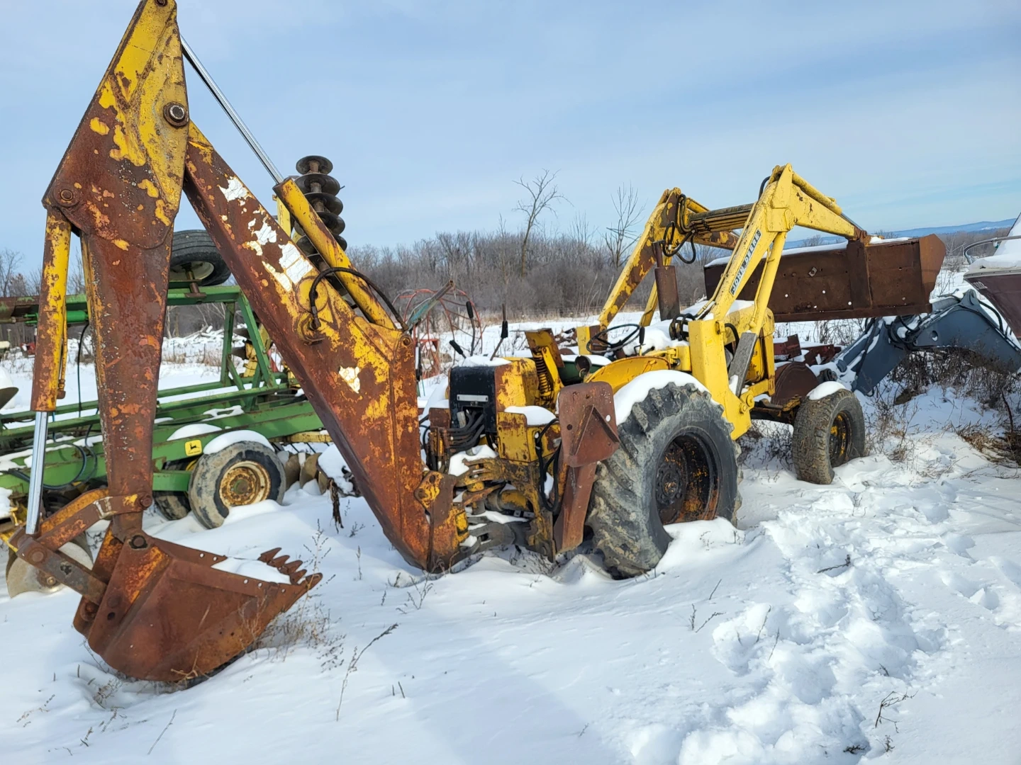 Selling a used John Deere 300 series backhoe loader. It's yellow and shows signs of wear. Broken injector pump. (Comes with another one.) Price is as is, but will consider parting out. Posting for a friend.