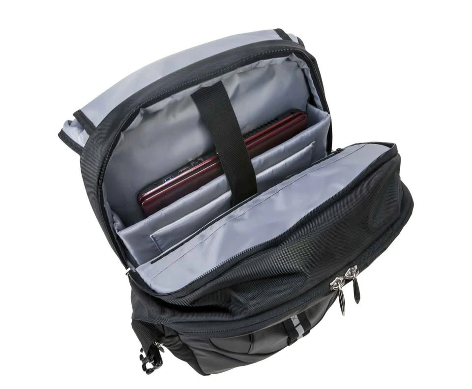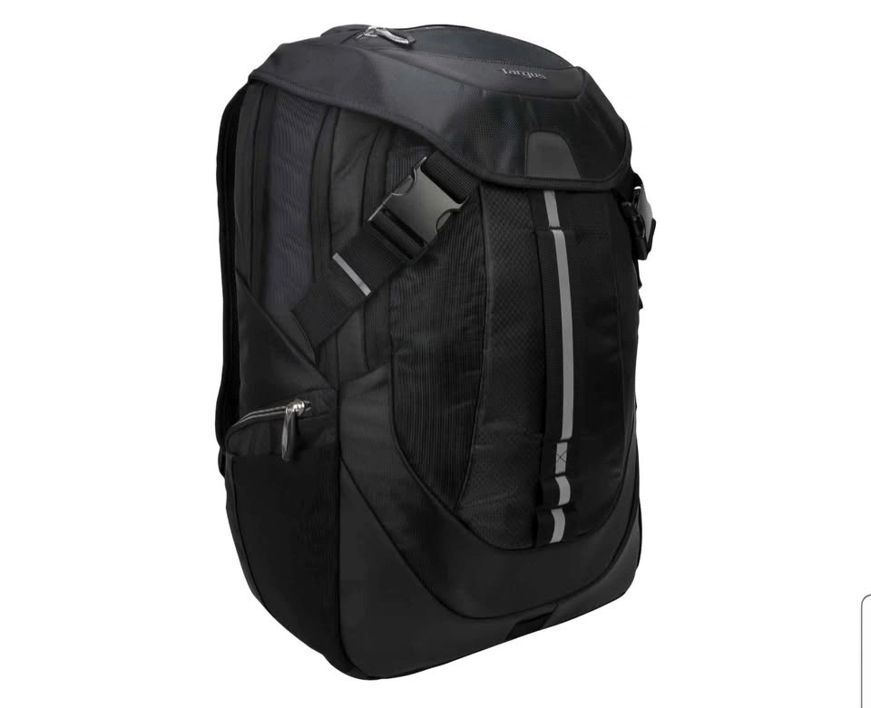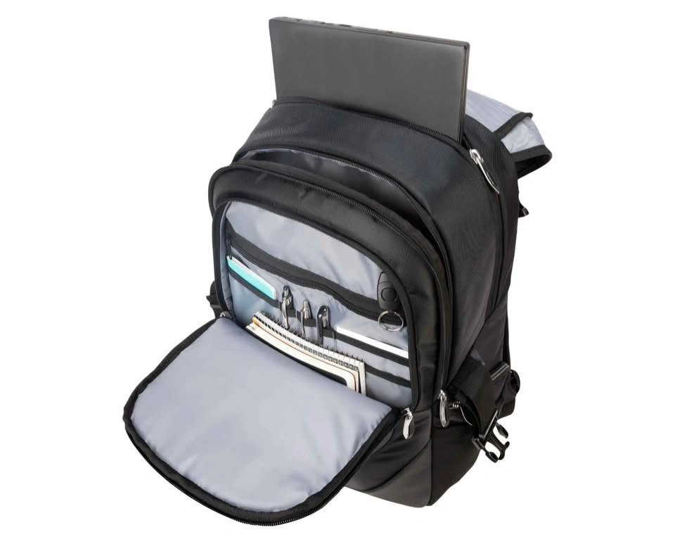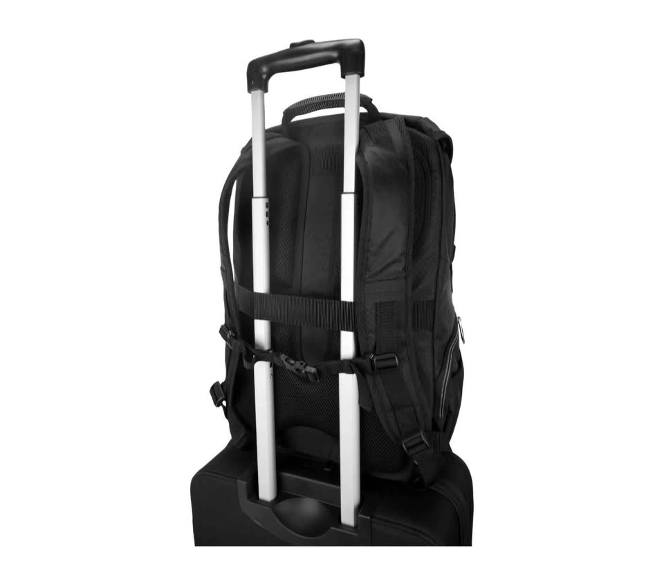 Targus Voyager 17.3" Laptop Day Backpack in black offers ample space and smart organization for professionals and students on the move.