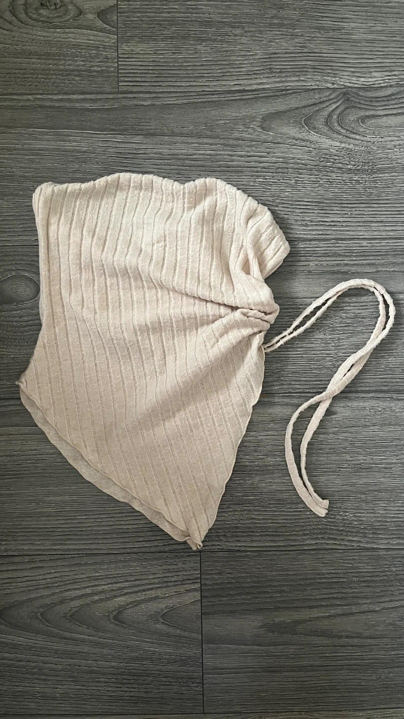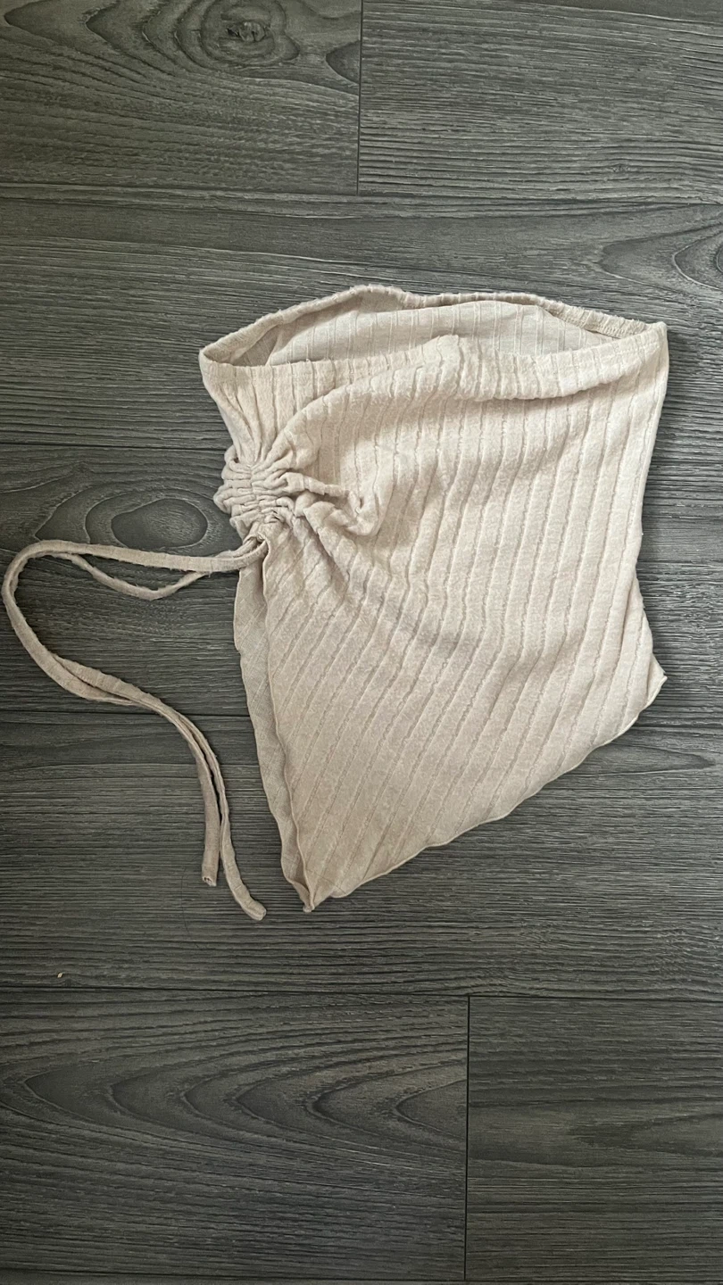 Cute tan tube top with an adjustable side string to make it longer or shorter. Ive worn this two or three times. Theres nothing wrong with the item I just don’t wear tube tops that often. Size S.