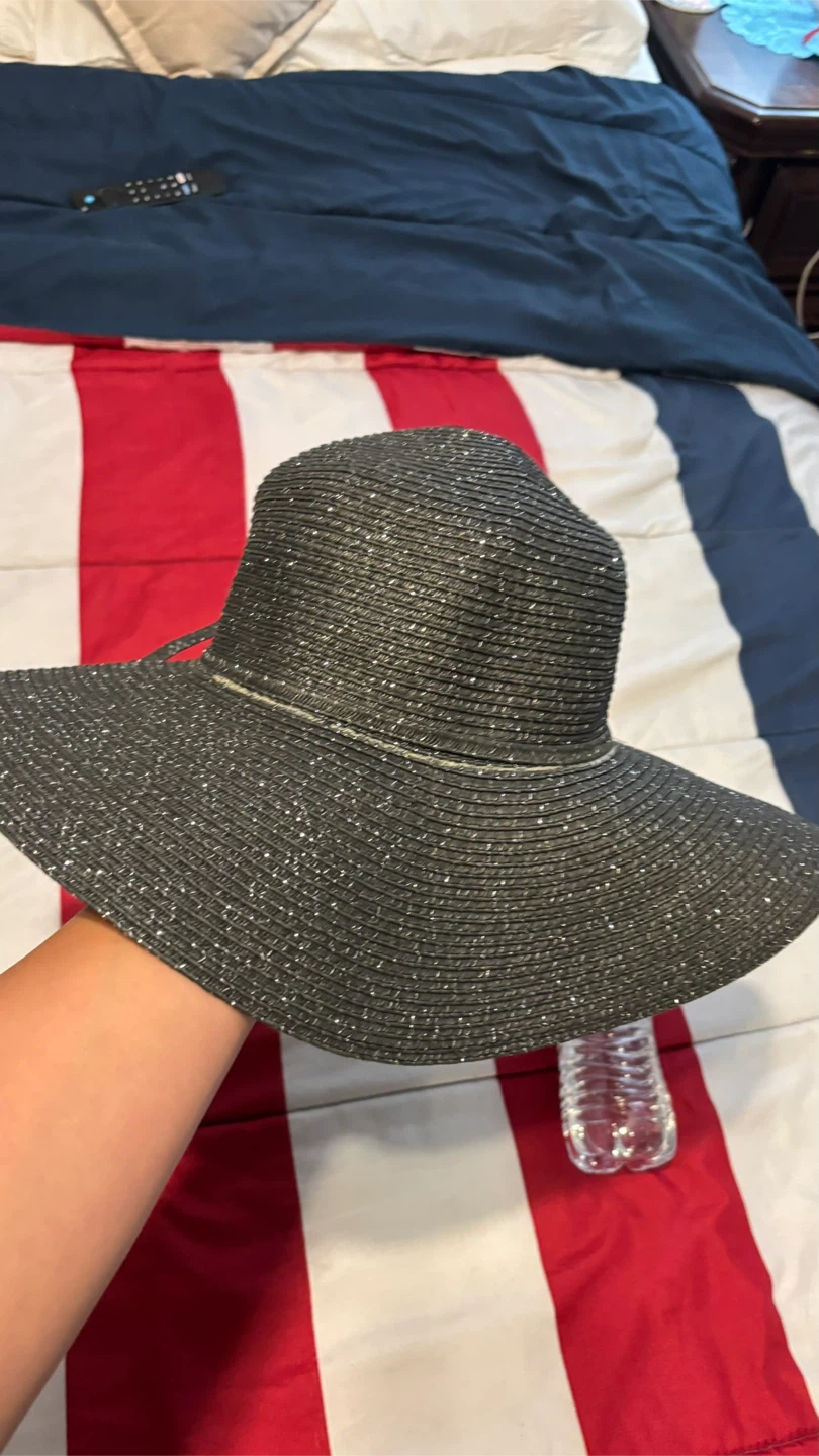 Selling a cute black floppy sun hat! It's perfect for keeping the sun out of your eyes on those bright days. Great for the beach, pool, or just a sunny stroll