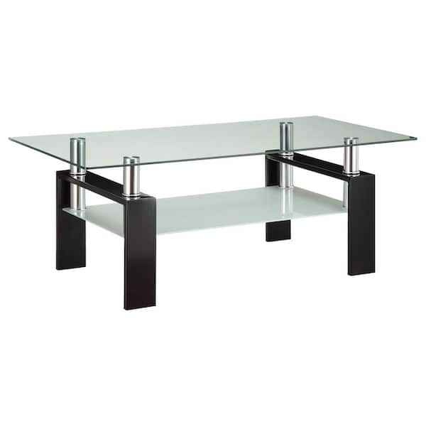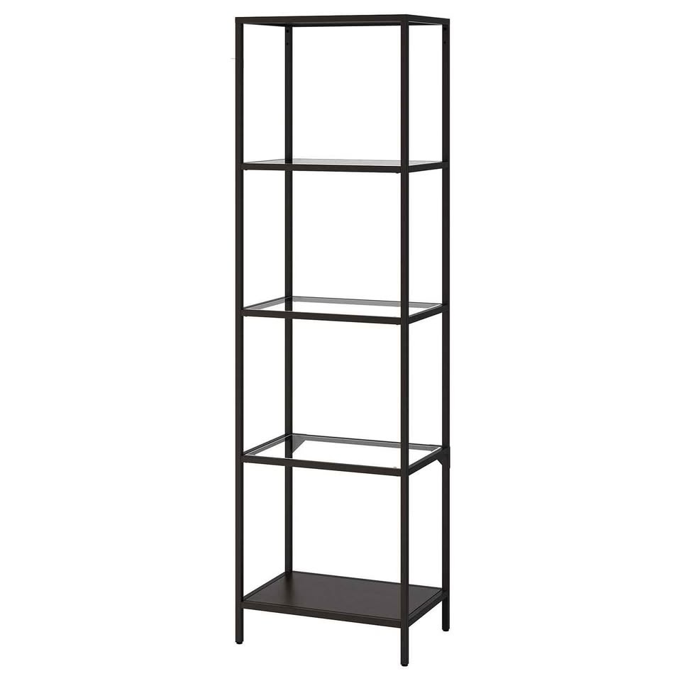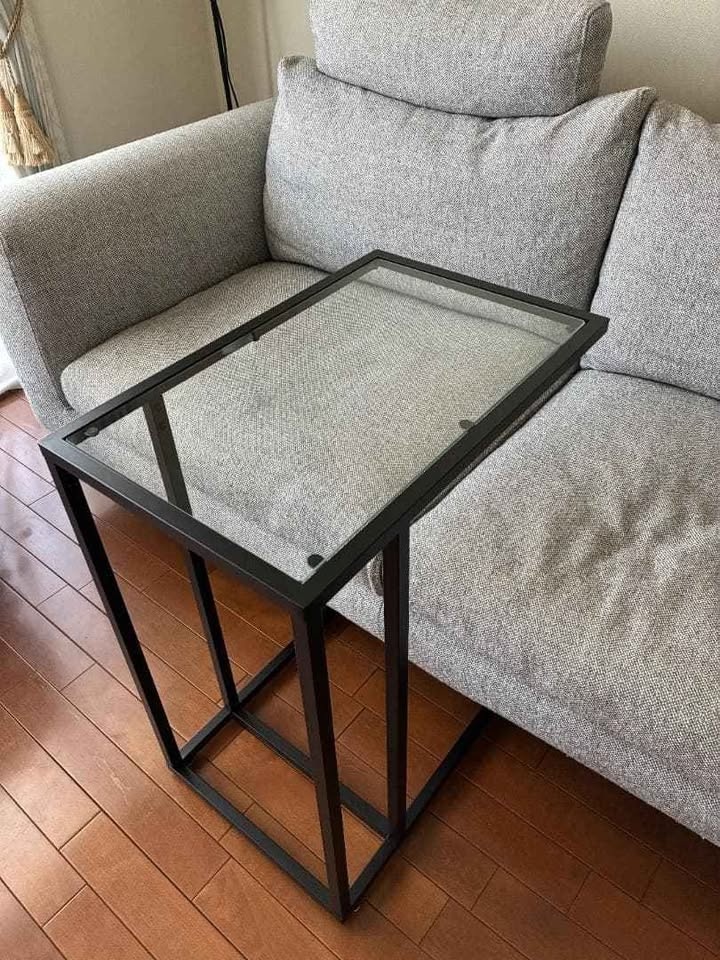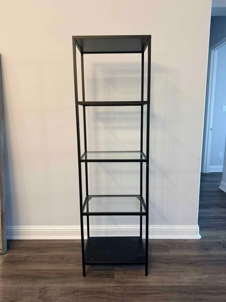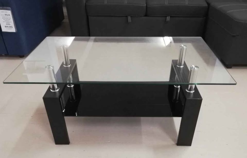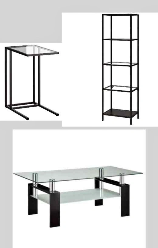 Included a glass top coffee table, a glasstop side table and a glasstop shelf unit.