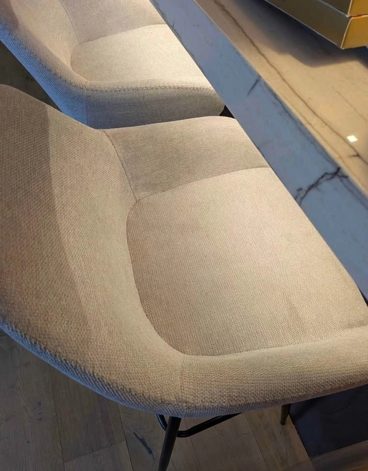 Selling a set of 5 modern swivel bar stools. They are comfortable and the upholstery is in good condition.