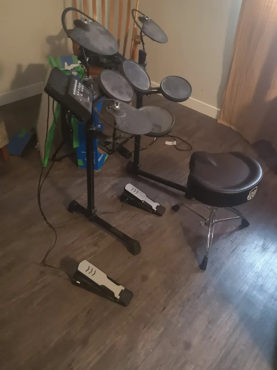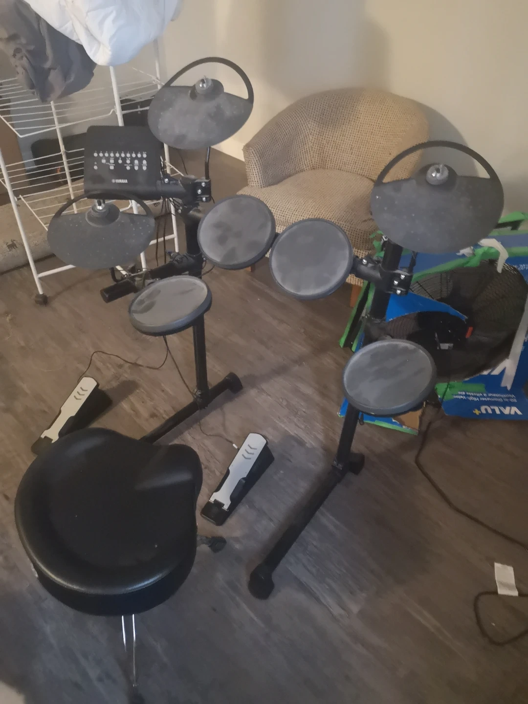 Selling a Yamaha electronic drum kit. It's in good condition and ready for a new player! Great for practicing quietly with headphones or jamming out loud. Crash cymbal doesn't work probably just needs a new cable. I've used it 5 times since I've got it just not for me and I need space in my room