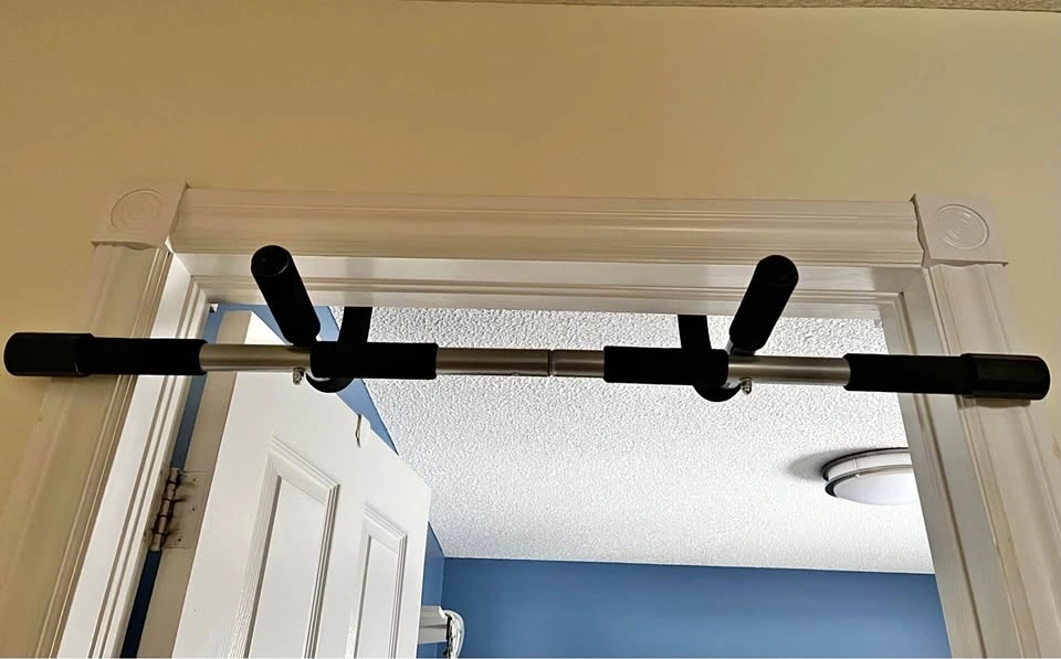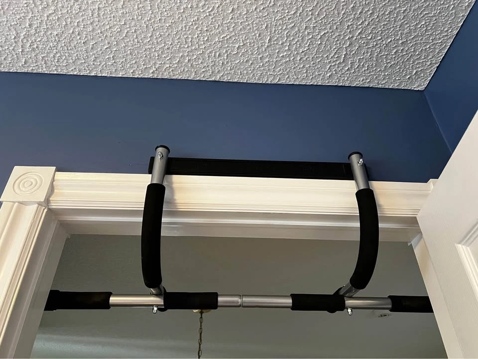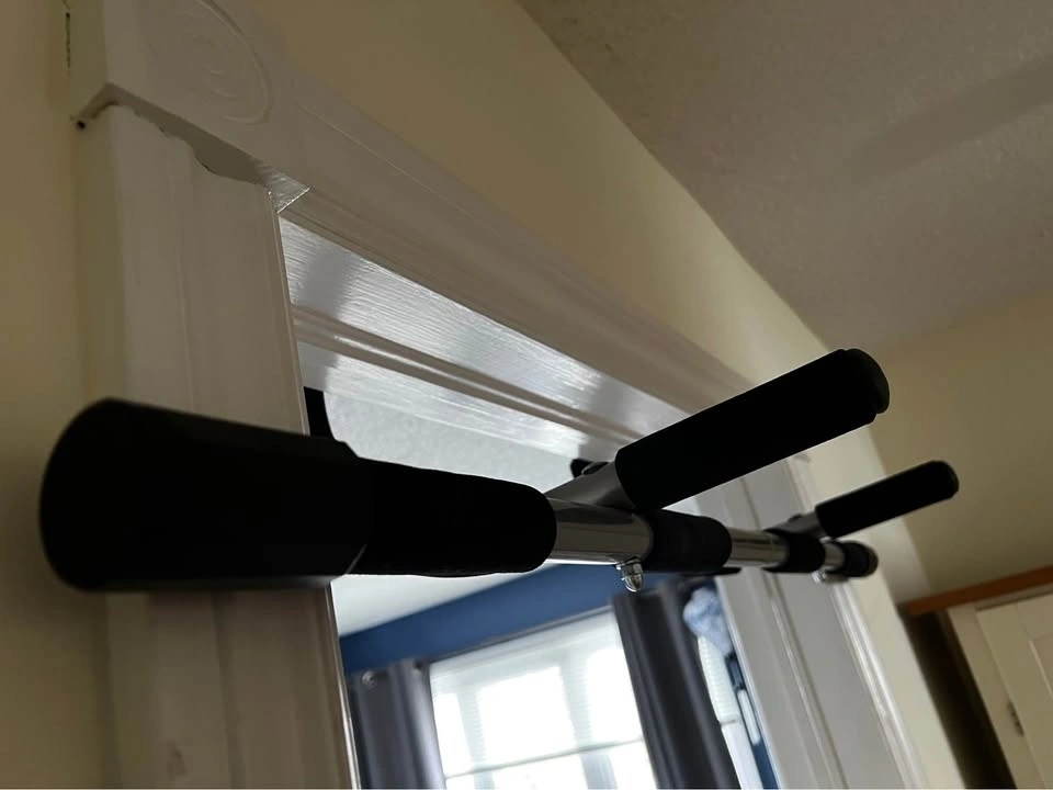 Pull-up / chin-up bar for doorway is in excellent condition. No marks or wearing. Multi-grip positions, foam grips, no screws required, and easy to install and remove.