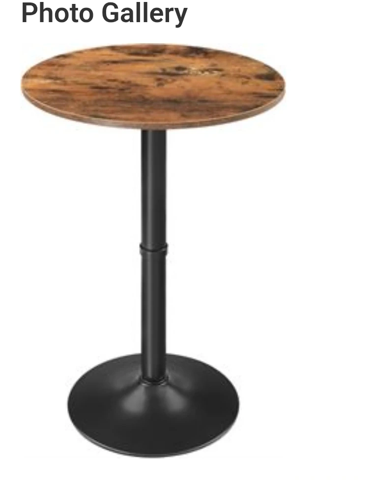 Looking to sell this adjustable round bar table! It features a rustic brown top and a sleek black base. The dimensions are approximately 89cm high.