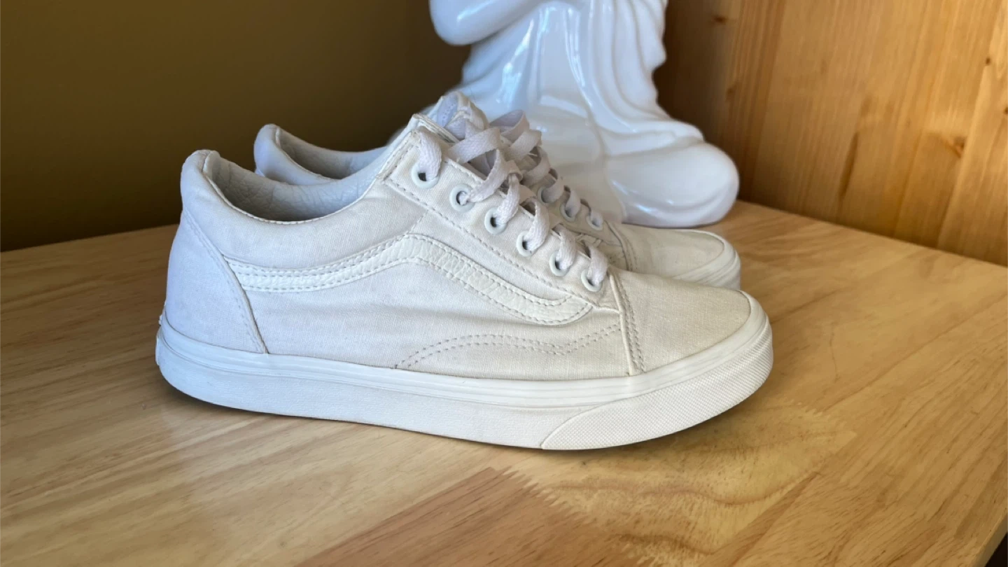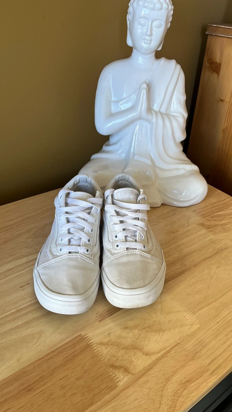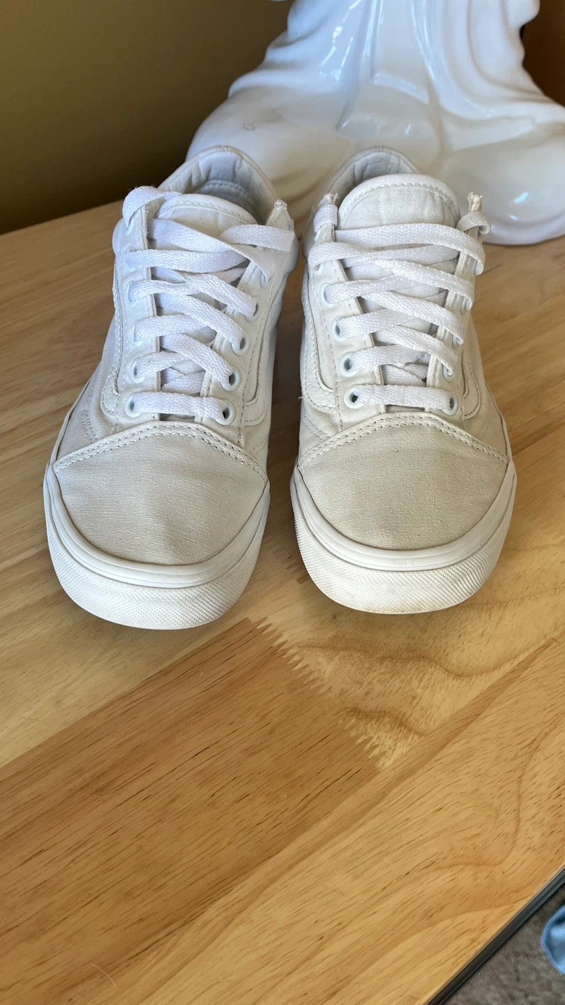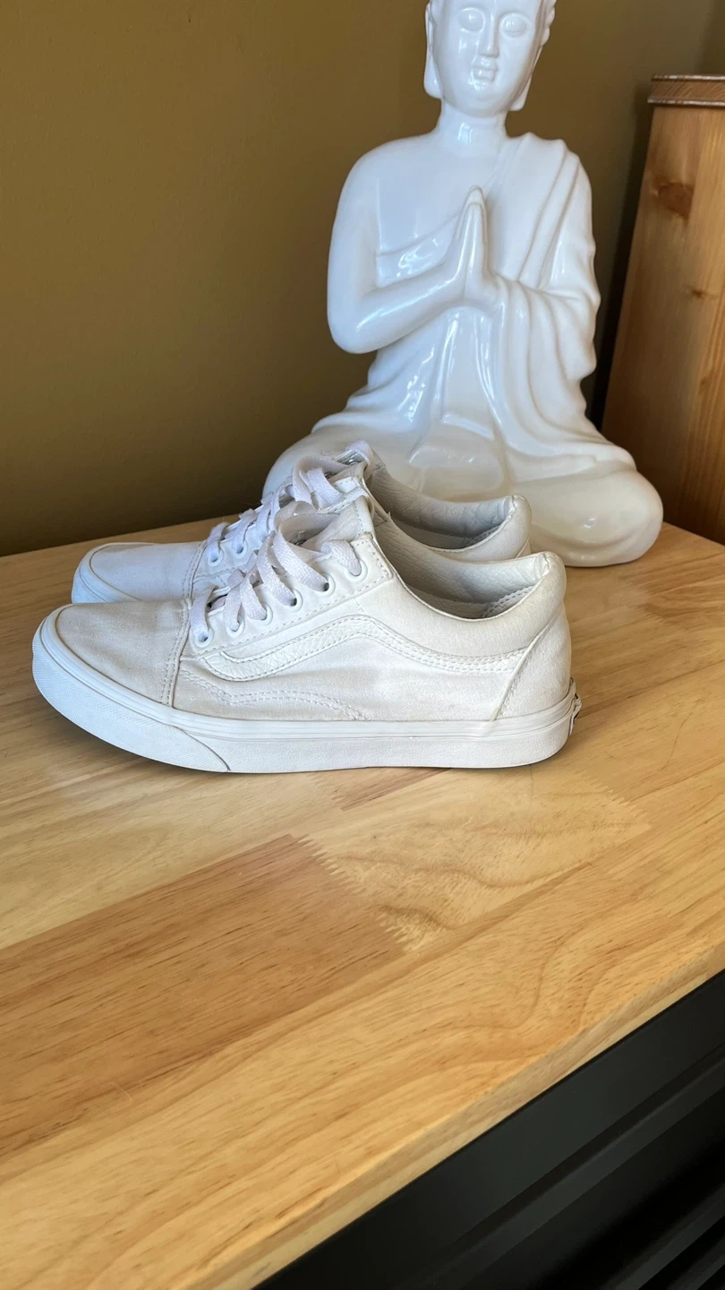 Selling a pair of Vans Old Skool shoes in off-white canvas! They're a classic and versatile style, perfect for everyday wear. These have been worn but still have lots of life left in them. Great for adding a casual touch to any outfit!