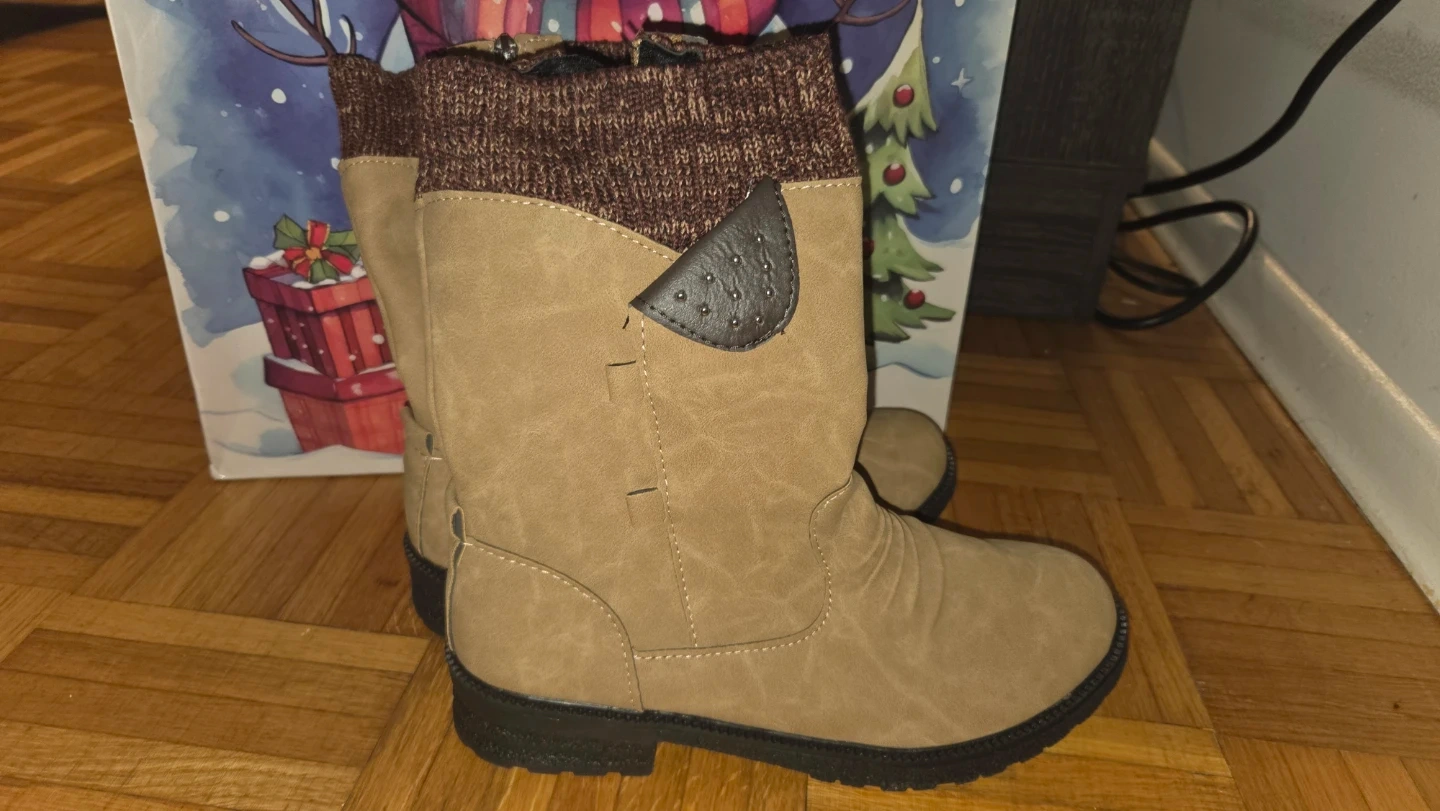 Cozy brown ankle boots, perfect for fall and winter! They feature a knit detail at the top and a small side zipper for easy on and off. They are in great condition and ready for a new owner! Got them as a gift but they're too small for me