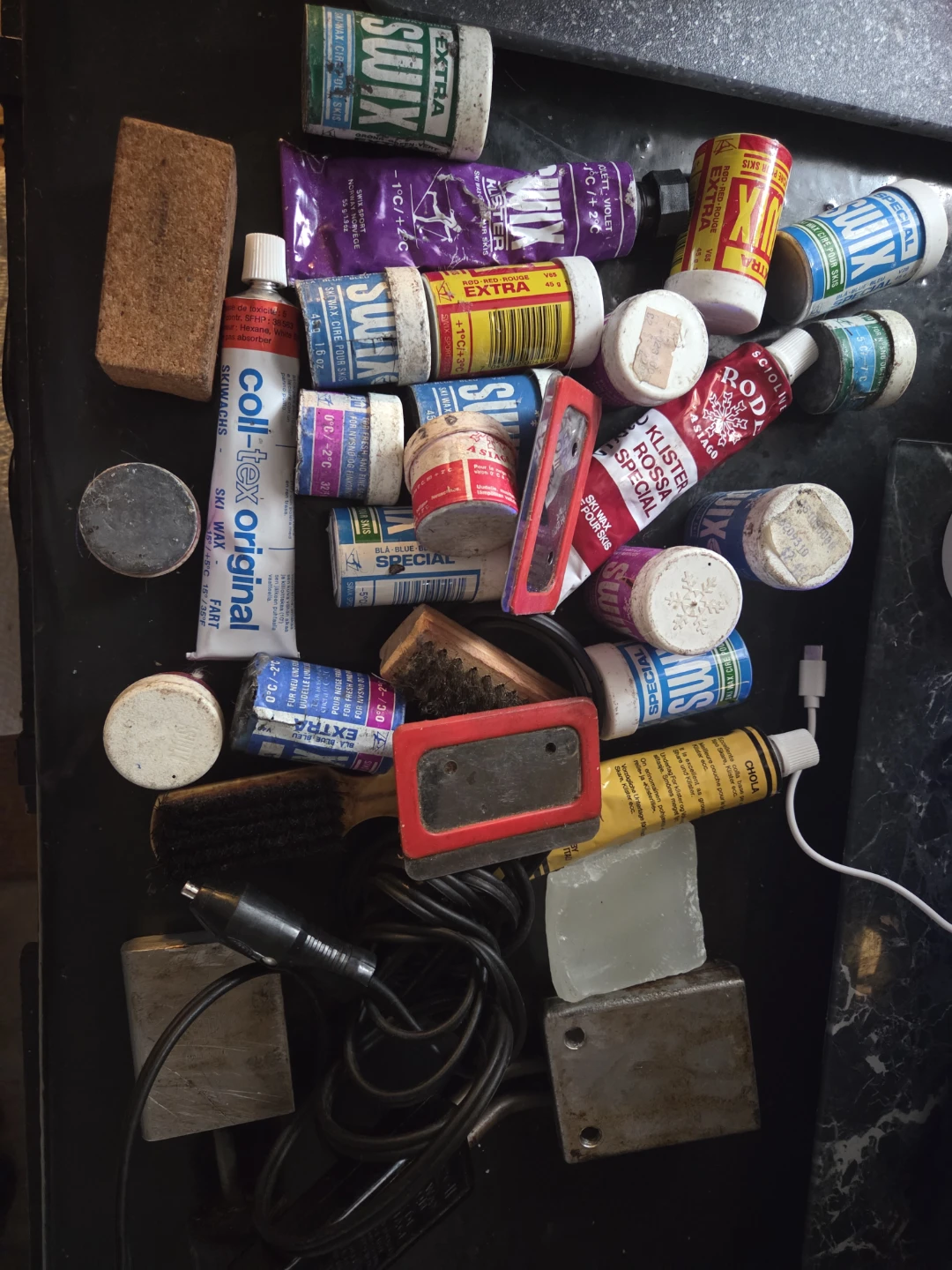 Selling a collection of ski waxes from various brands like Swix and Coll-Tex! Includes a variety of types, such as Klister and extra waxes. Perfect for getting your skis ready for different conditions. Check out the photos for details!