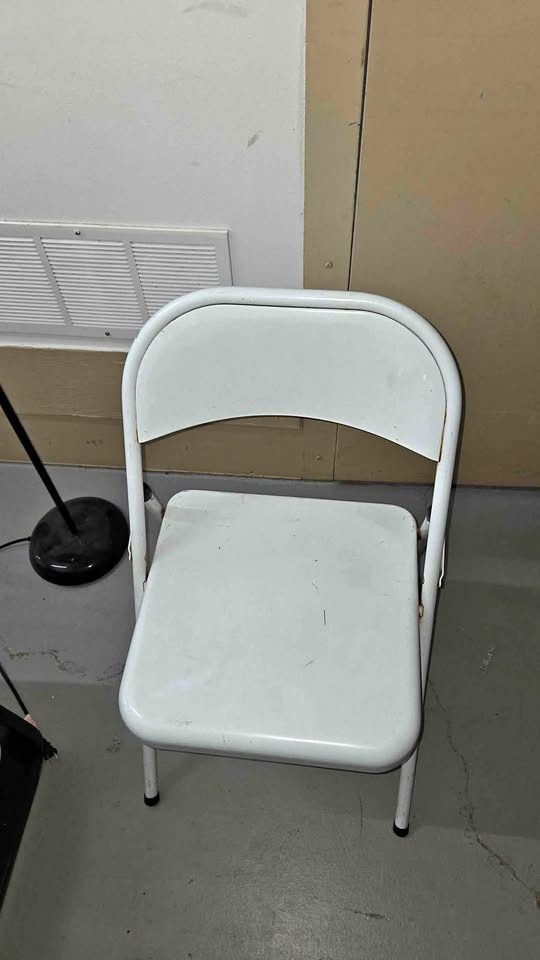 I have 2 of these metal chairs. They're very sturdy so even if you step on them, you'll be ok :) (I've done it myself). They fold upwards. They're not that heavy and could be easily stored in a smaller space.