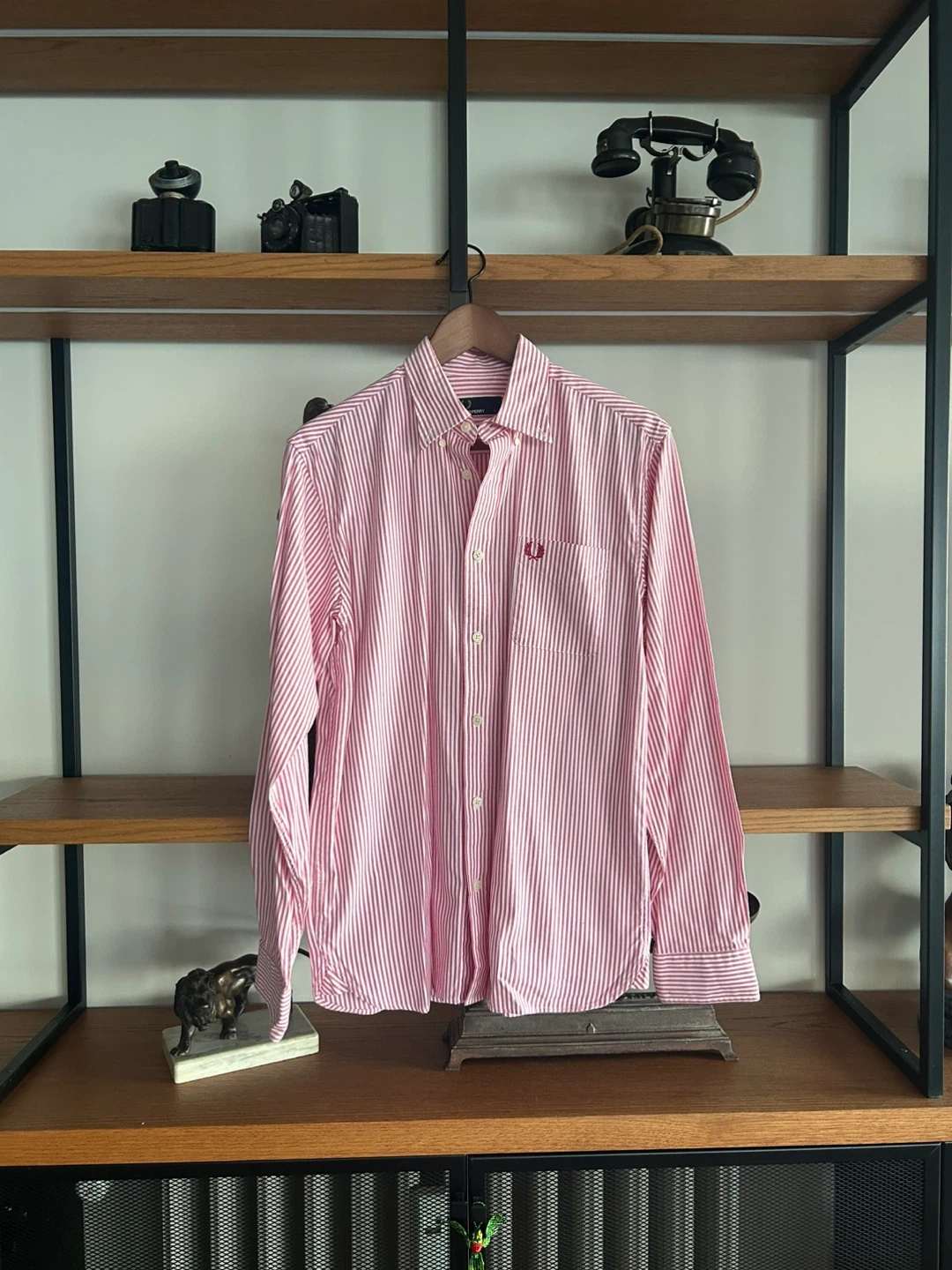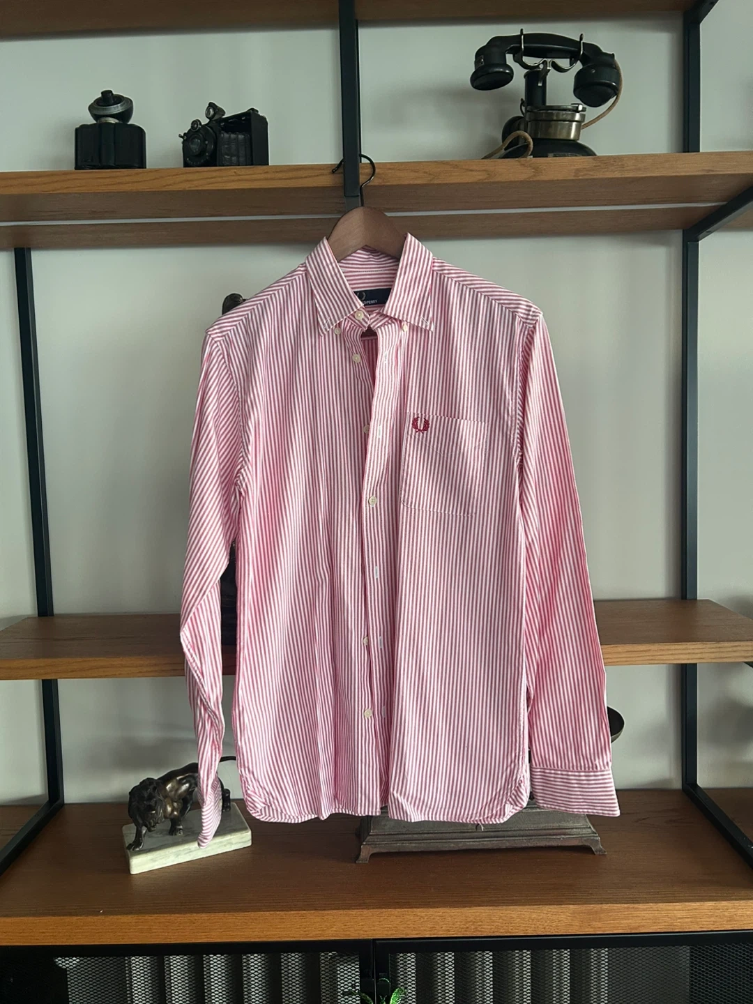Here's a Fred Perry striped shirt in size small! It's a classic piece with the iconic Fred Perry logo. Perfect for adding a touch of style to your wardrobe. Its never worn selling since i never really wore it before. Retail price is around 100+ USD.