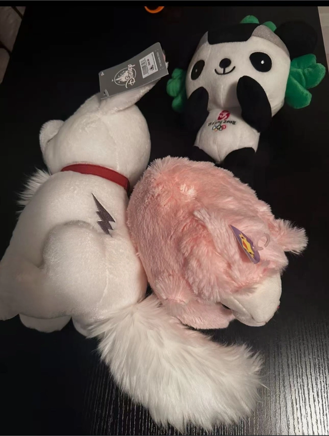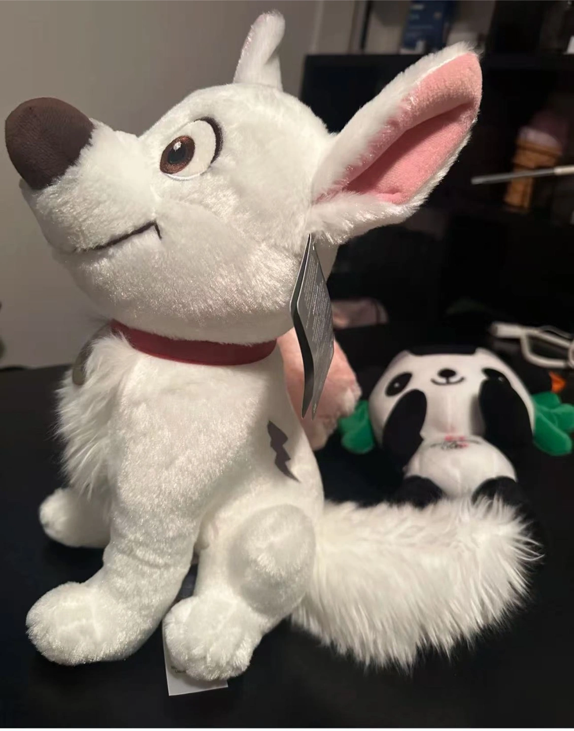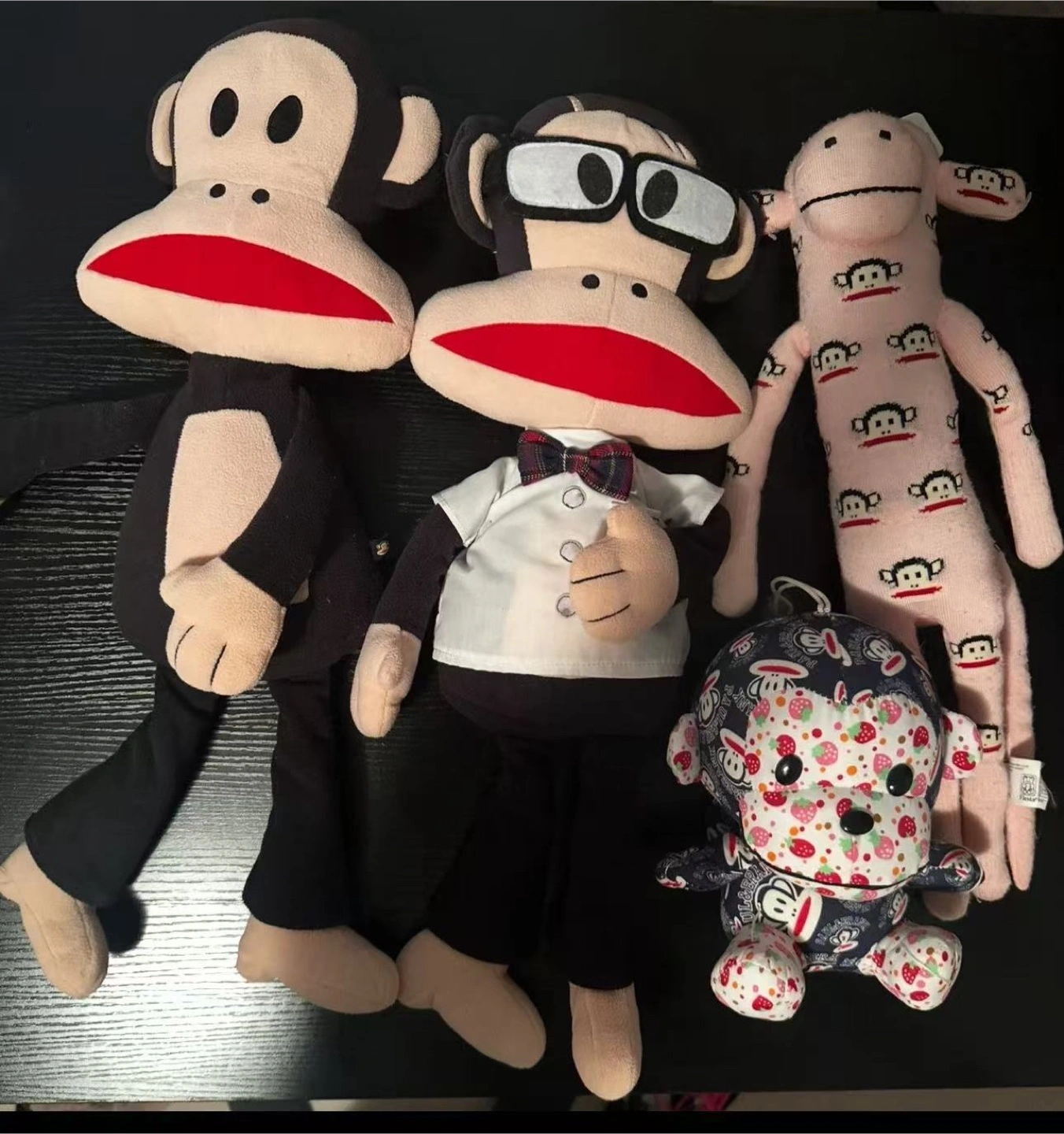 Selling a lot of Paul Frank monkey plushies! There are a few different styles, including one with glasses and a bow tie, and a pink one with a pattern. Also including a Bolt plush and a 2008 Olympics panda plush!