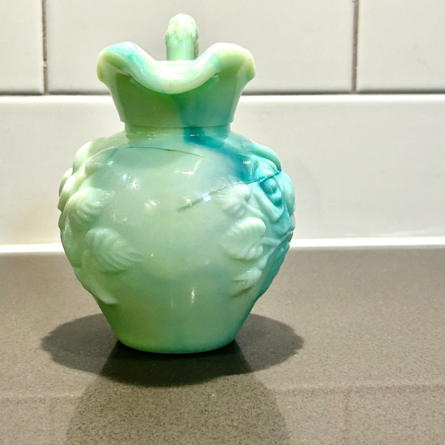 • Material: Milk glass (slag-style coloration)