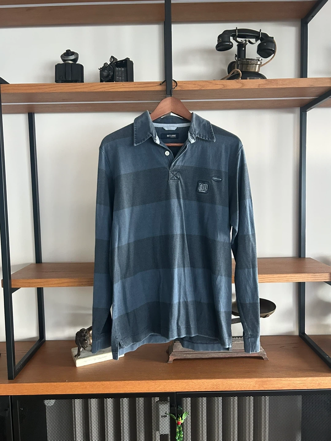Here's a Dutti Sport by Massimo Dutti polo shirt. It features a blue striped design and is only worn once or twice. Perfect for a casual yet stylish look!