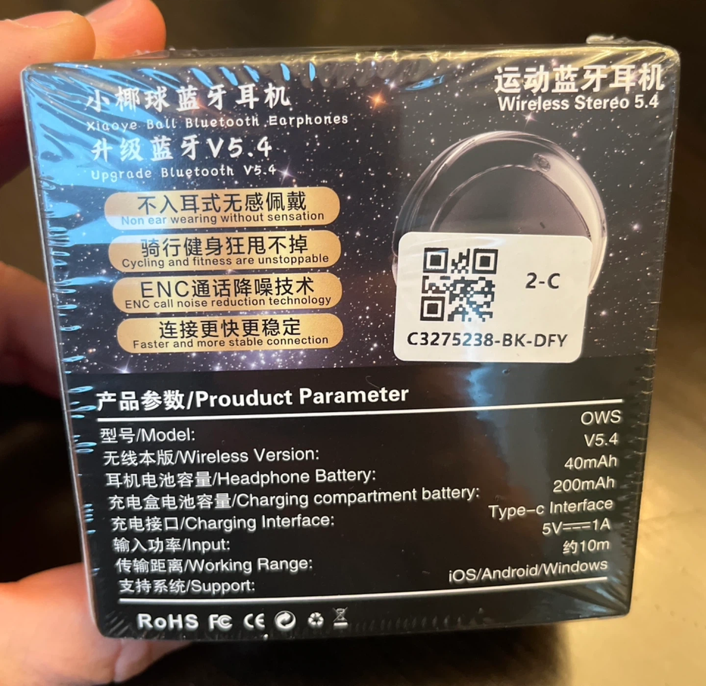 Selling a brand new set of OWS translator Wireless Stereo 5.4 earphones! They are still in the original packaging. The box indicates they are comfortable to wear and unlikely to fall off. They feature: