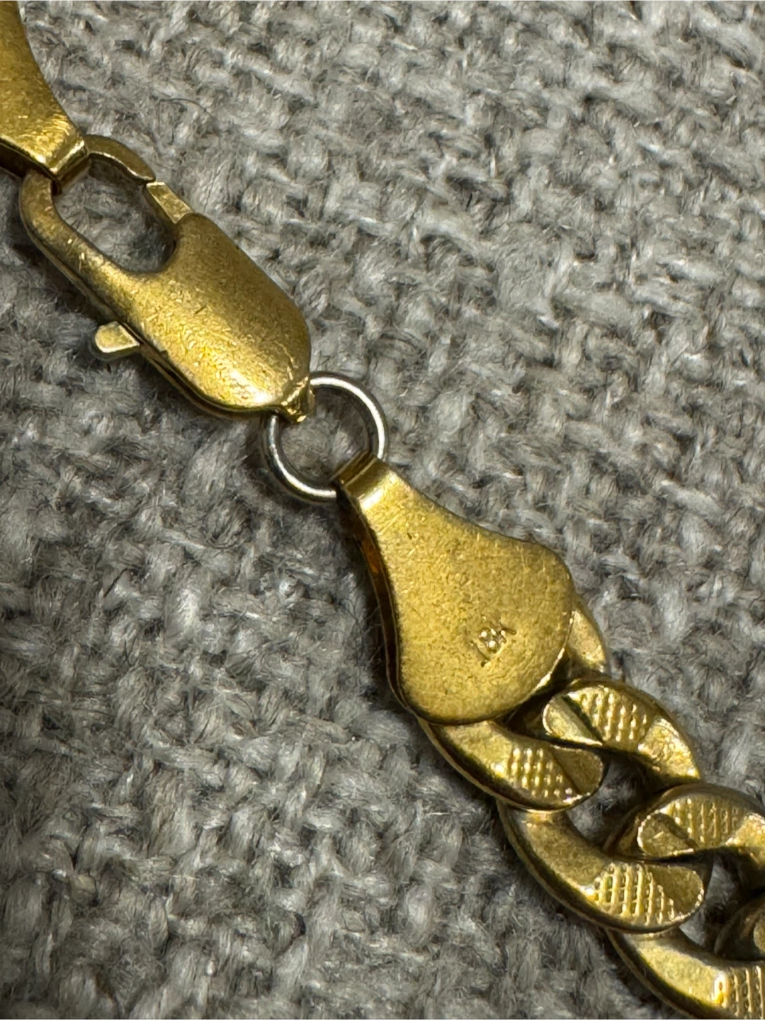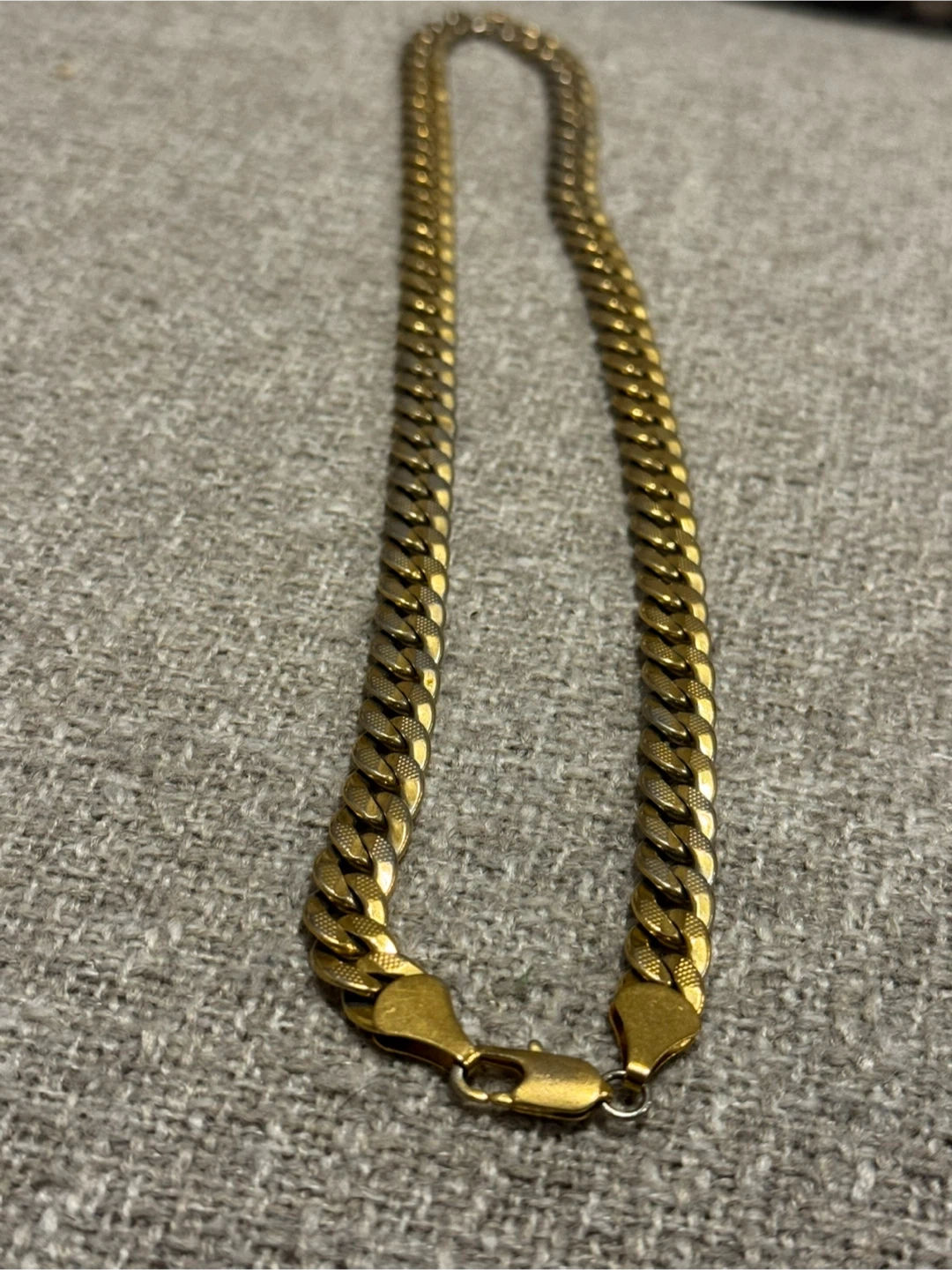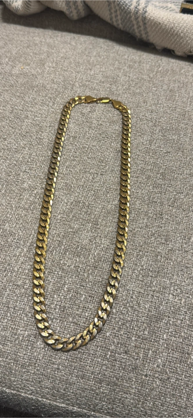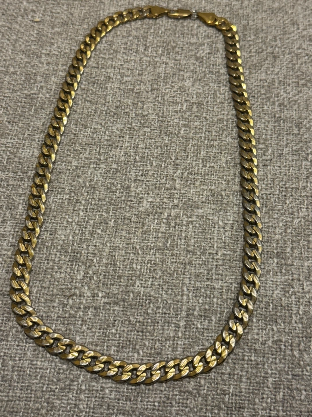 Selling a gold Cuban link chain necklace! It's in great condition and has a nice weight to it. Perfect for adding a touch of style to any outfit bought from peoples 10 years ago some fading